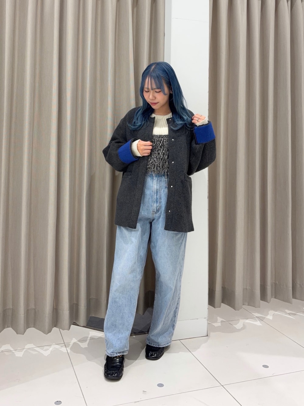 カジュアルニットにチュール素材のバルーンスカートで女性らしく✨