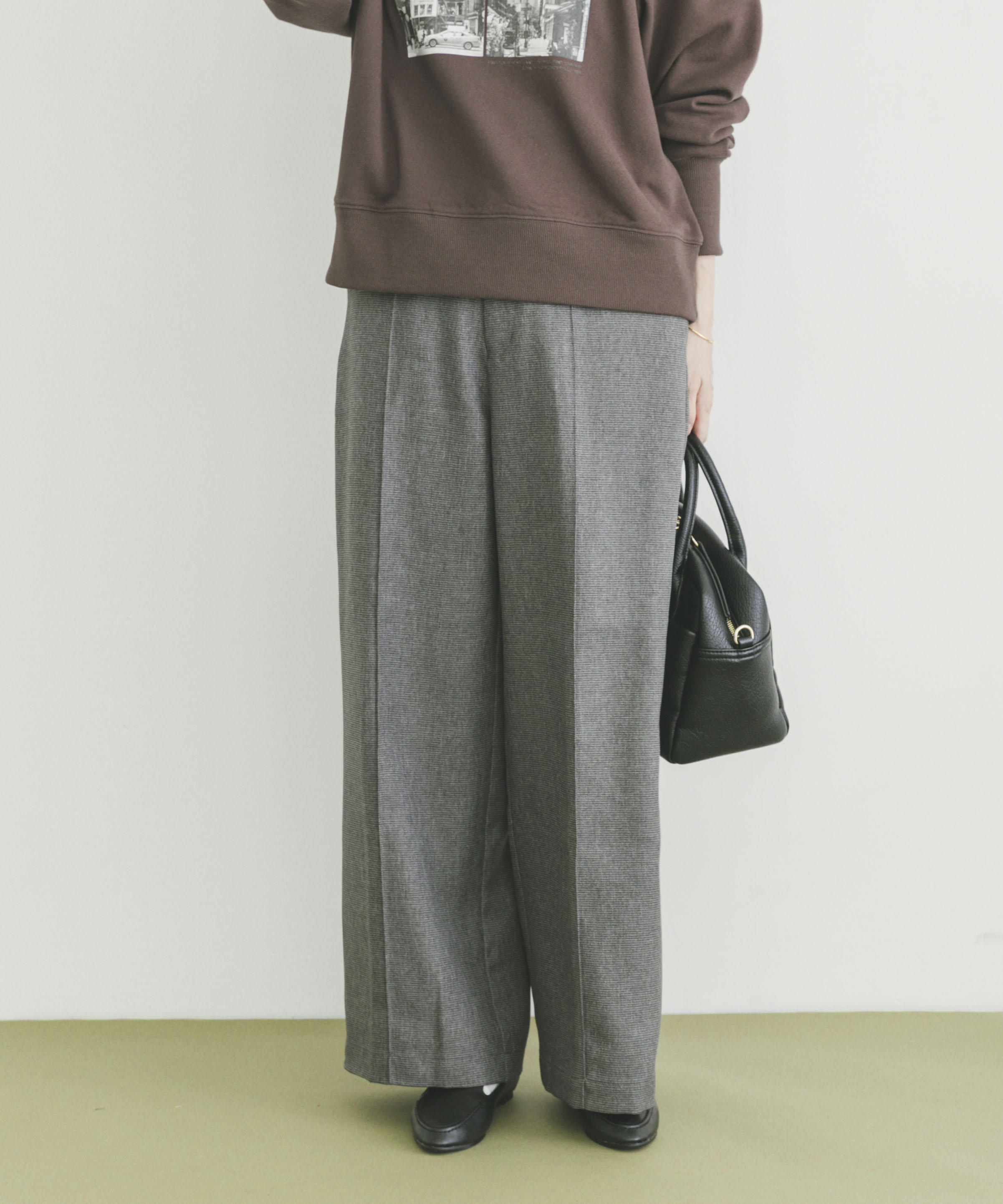 センターのラインやベルトで綺麗目に着られます。157cmの私で丈感は床に付かず