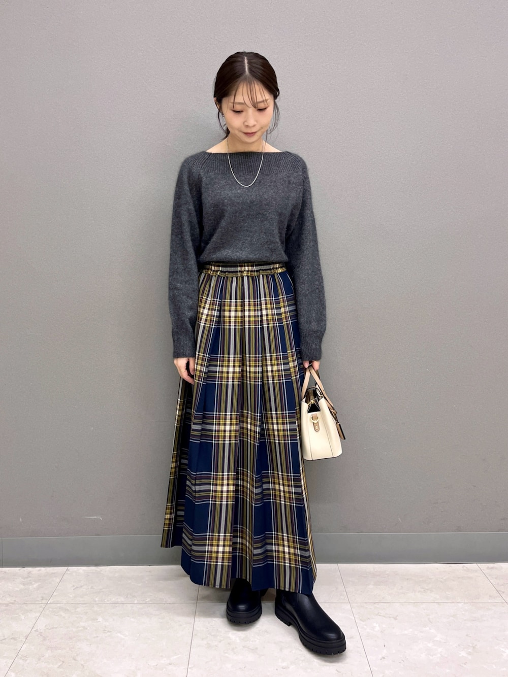 冬は暗いカラーを選びがちなのでパッと映えるカラーのニットがおすすめです◎