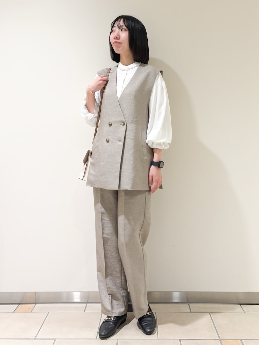 トップスがくすみ系なのでボトムにはグレーでまとめました!