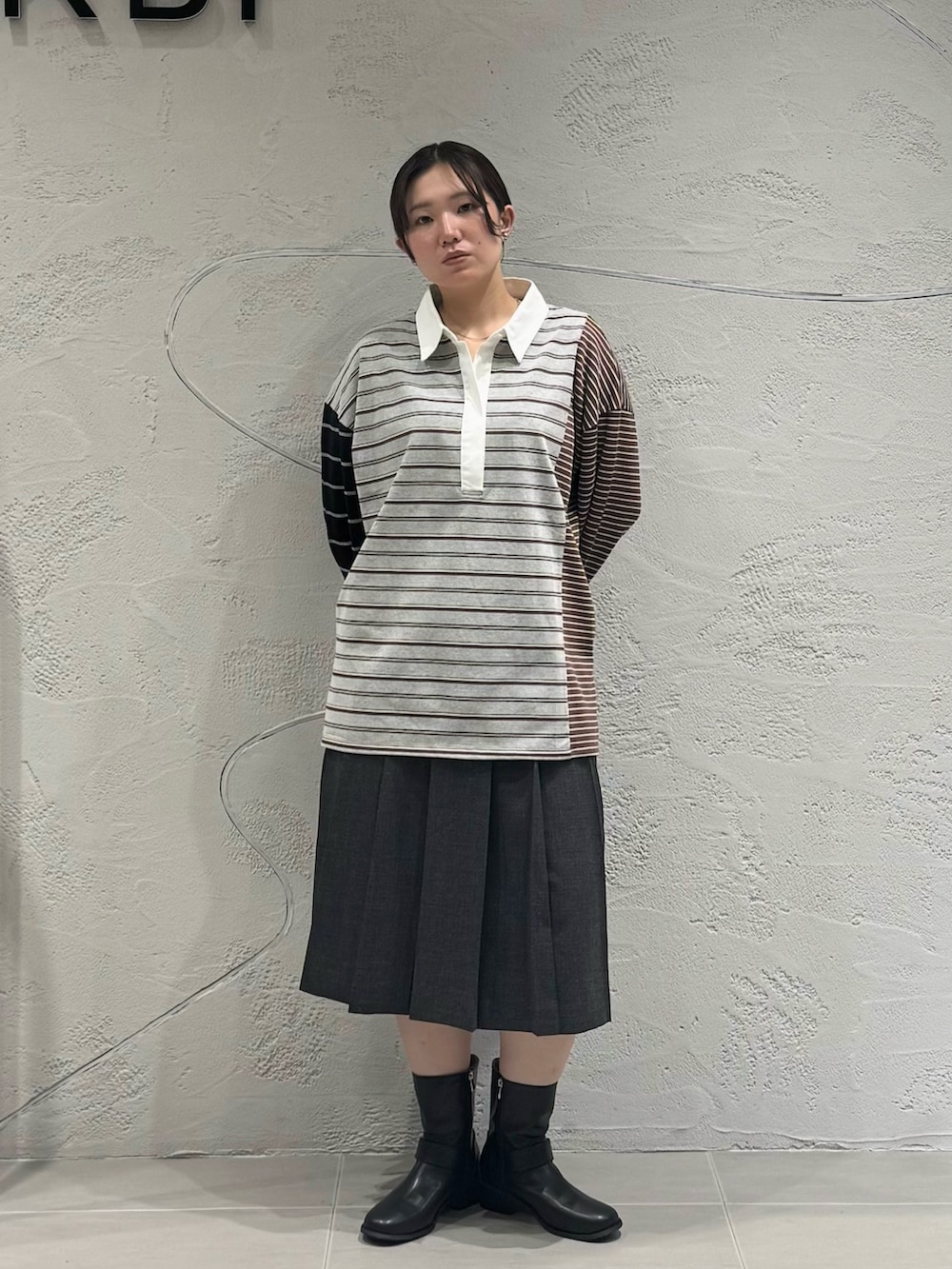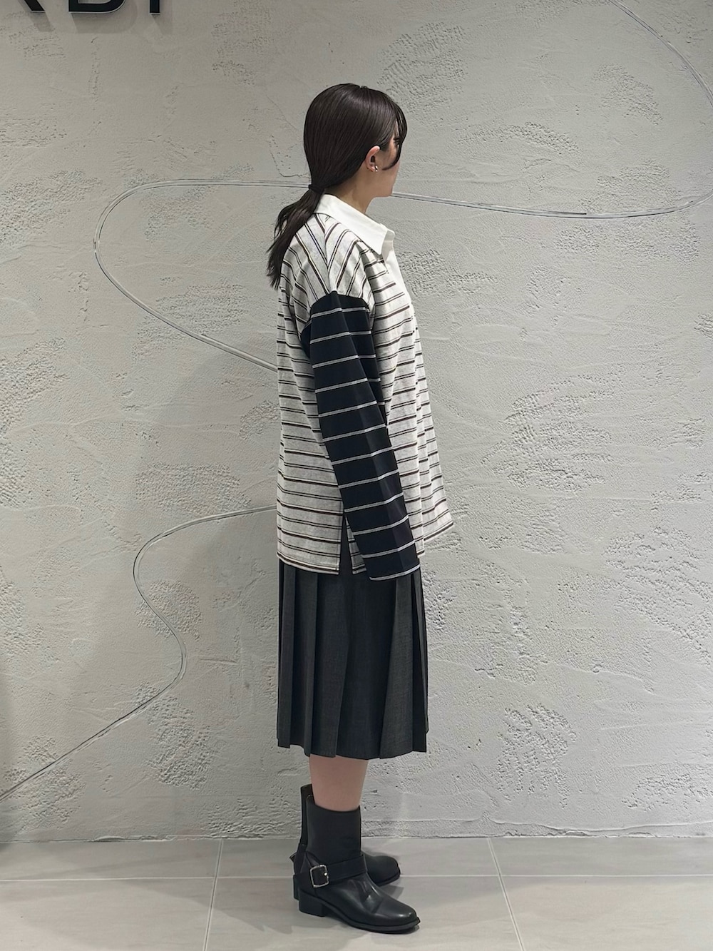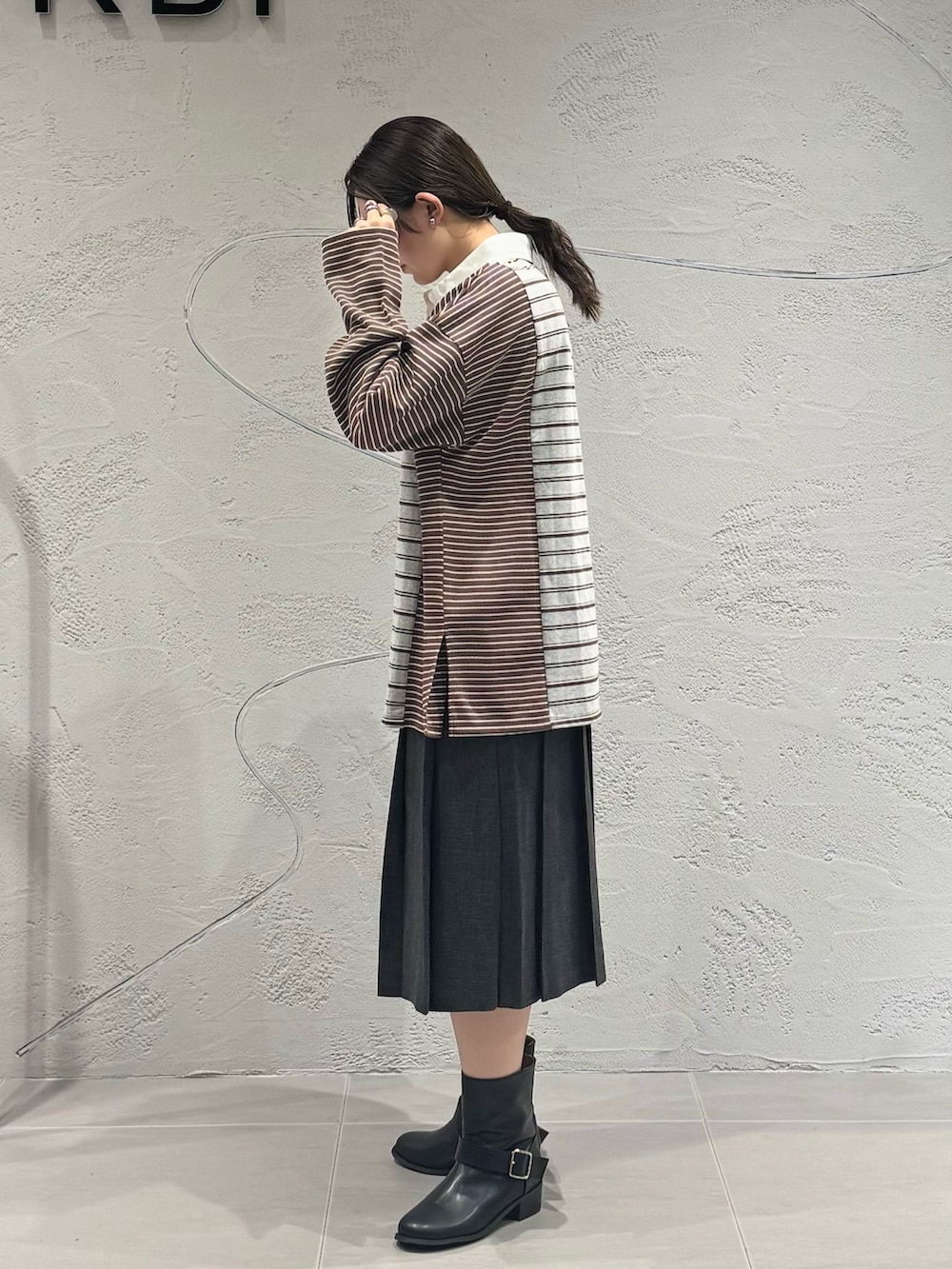 ボトムスはミディスカート、足元はウエスタンブーツを合わせてブリティッシュスタイルに🇬🇧