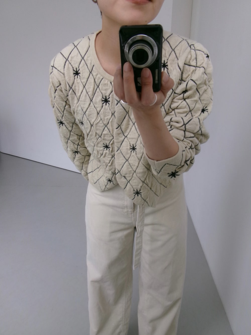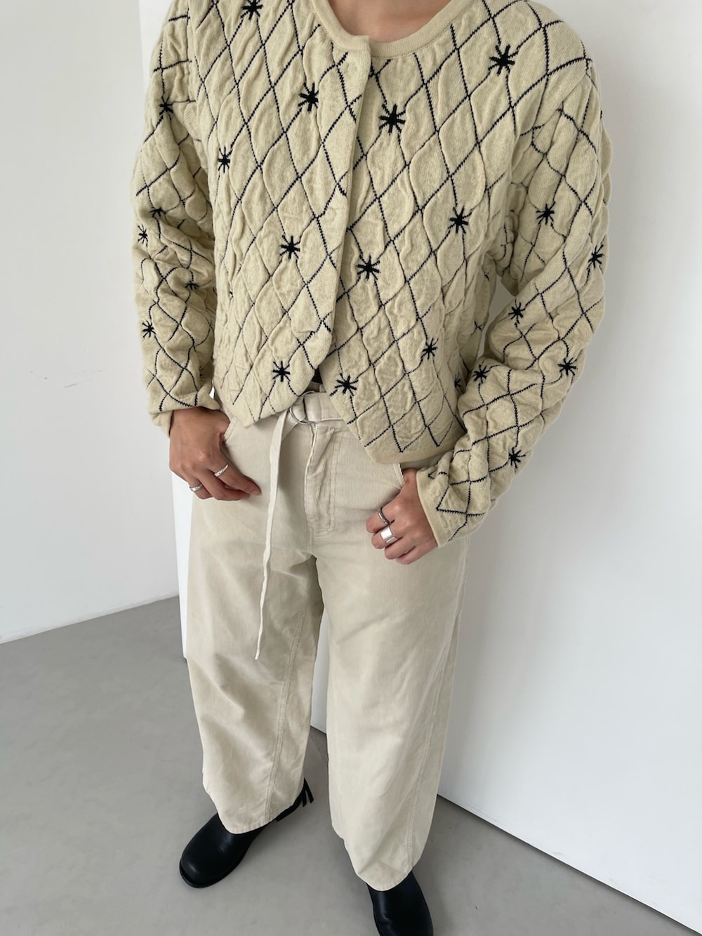 ワントーンにすることでカーディガンの柄が際立ちます!