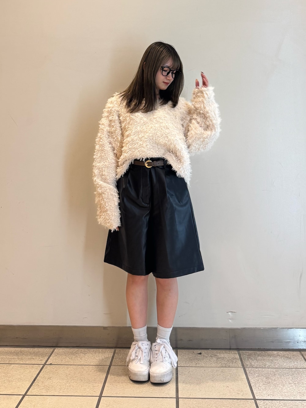 ボトムにはチェックのスカートをあわせてより甘い印象に!