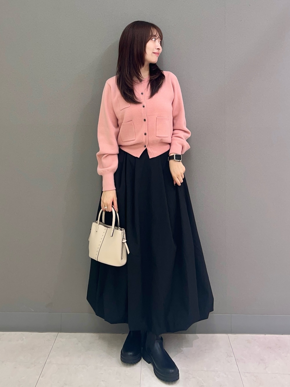 ジャケットはフェイクスエードの素材感と短い丈が、秋らしさと程よいハリ感を出してくれます🔥