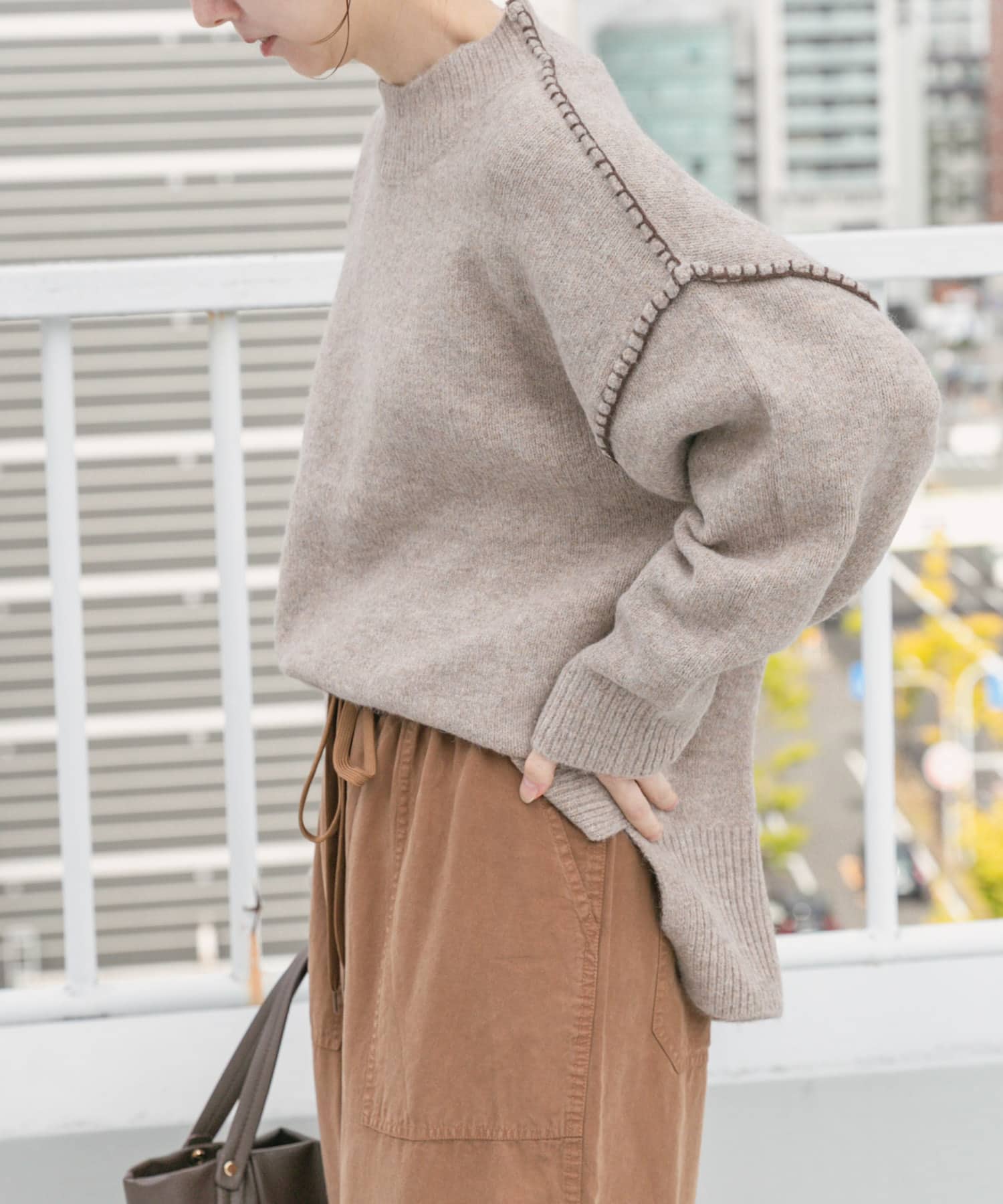 ステッチがポイントのニットは、程よいオーバーサイズで腰周りもしっかりカバーしてくれます🌈