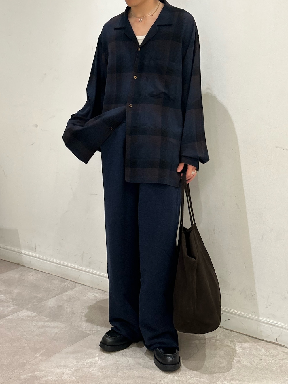 毎年人気なスーパー100ウールを使用したPコート!着心地はふわっと軽いのにすごく暖かいです✨ピンクのニットにグレーのアウターとパンツで甘くなりすぎないコーデです🩶