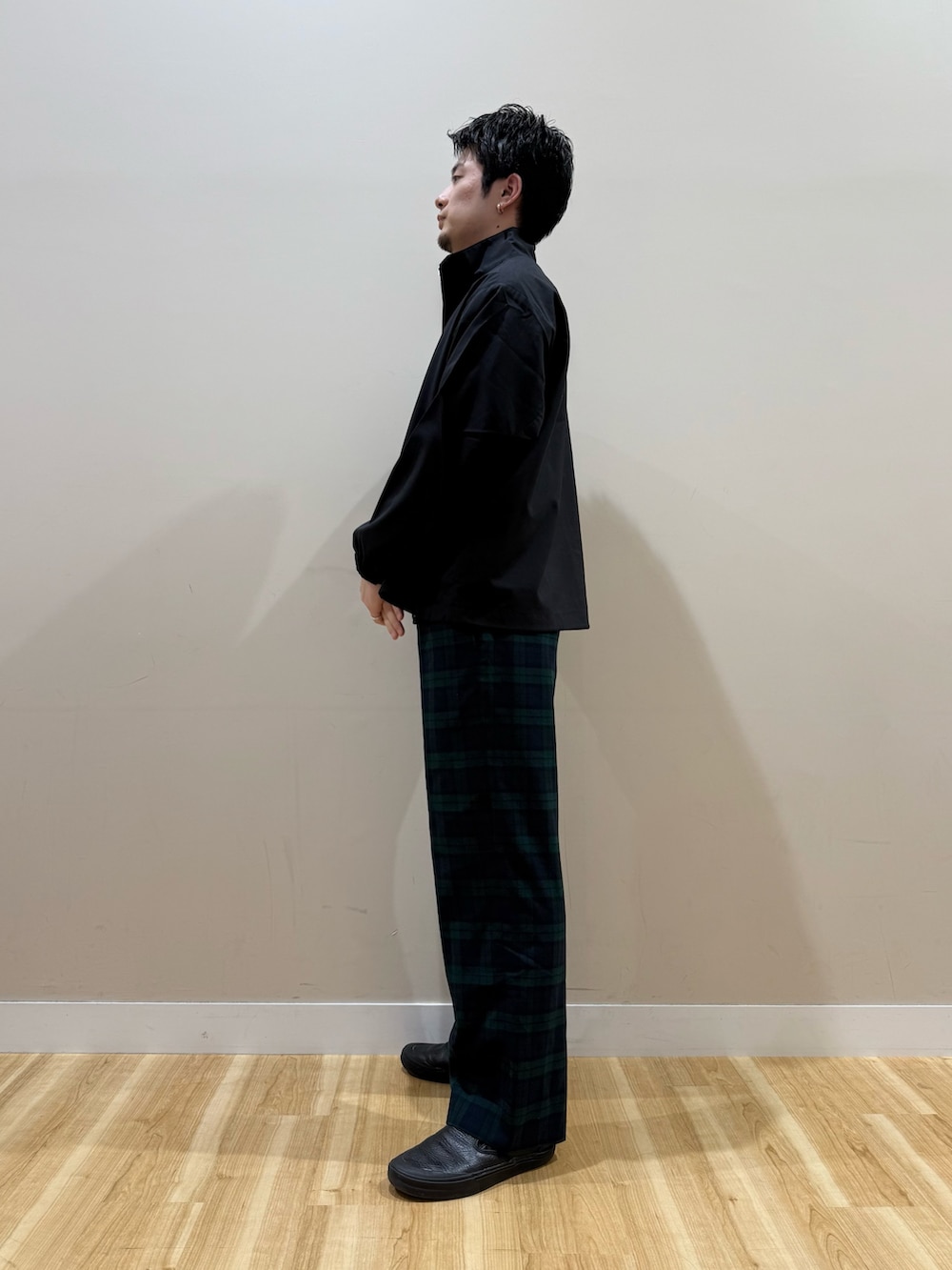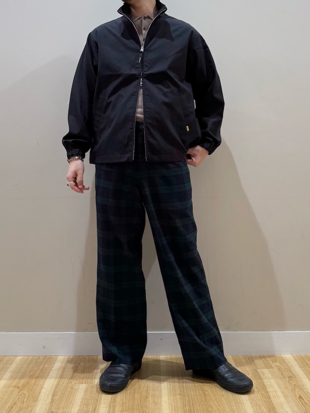 今回は大きめのチェックのパンツを使って、シンプルの中にも柄パンで遊びを。