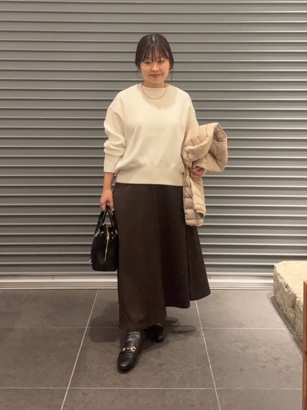 今回はプリーツスカートにボアトートで週末お出かけコーデにしてみました。ブラウンカラーでまとめると季節感が出ておすすめです。