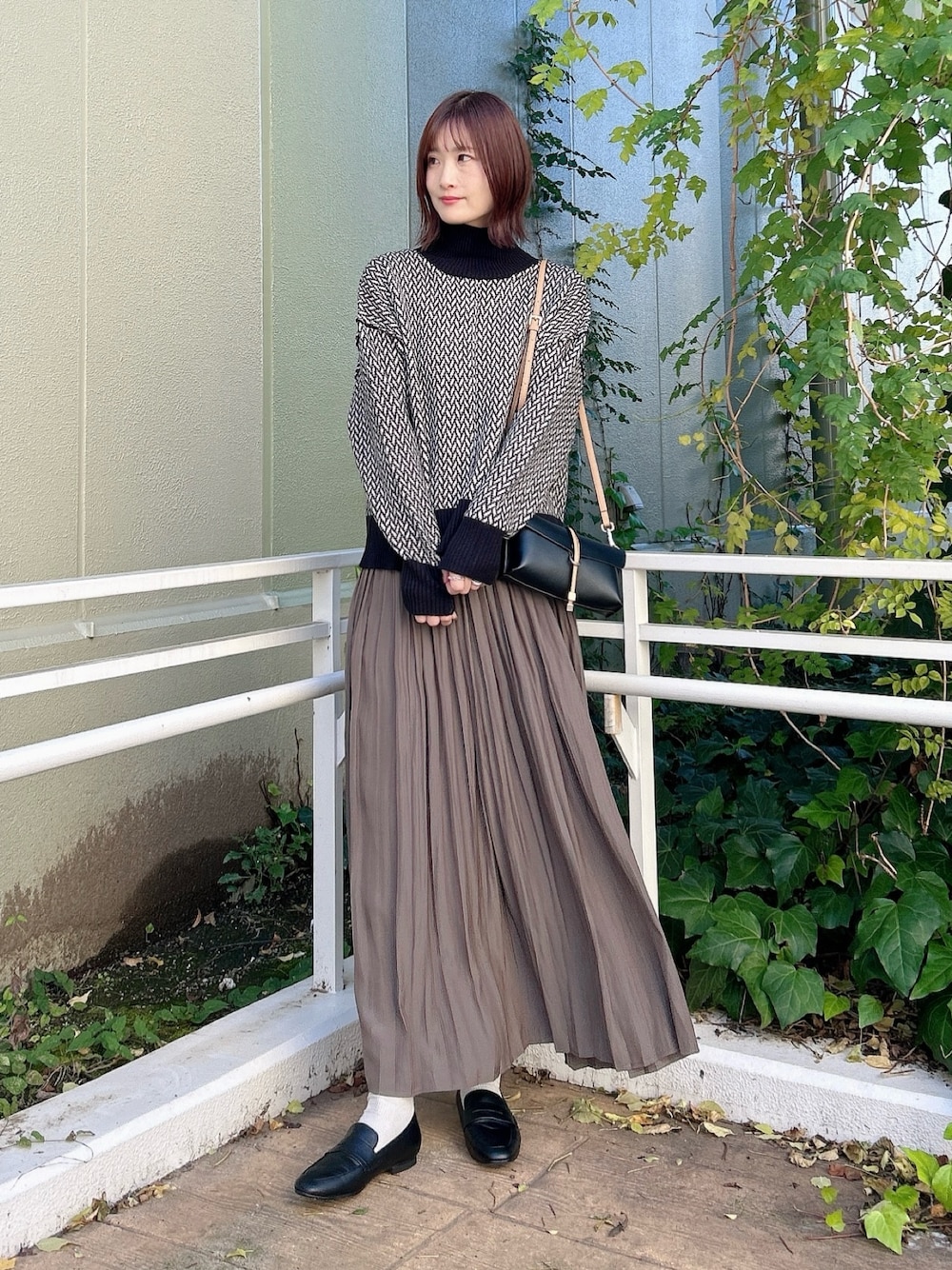 インナーにタートルをレイヤードすると、こなれ感もアップして秋冬らしい暖かさも