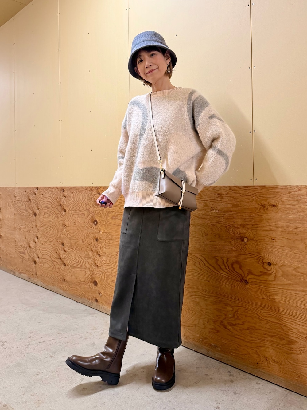 ✔︎ すとんと落ちるシルエットが縦ラインを強調して、スタイルアップが叶うニットスカート。