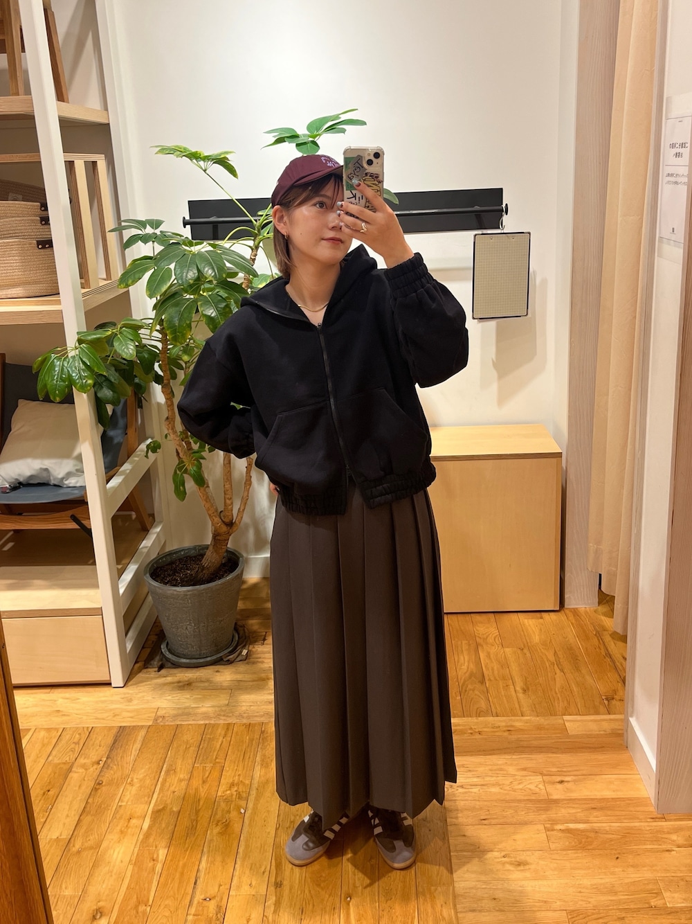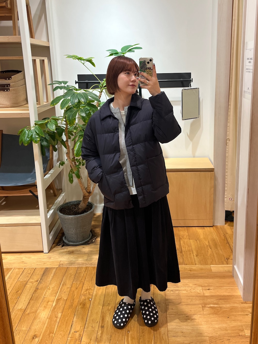 中に着ているボーダーニットはふわふわとろとろした素材で、着心地が抜群です!