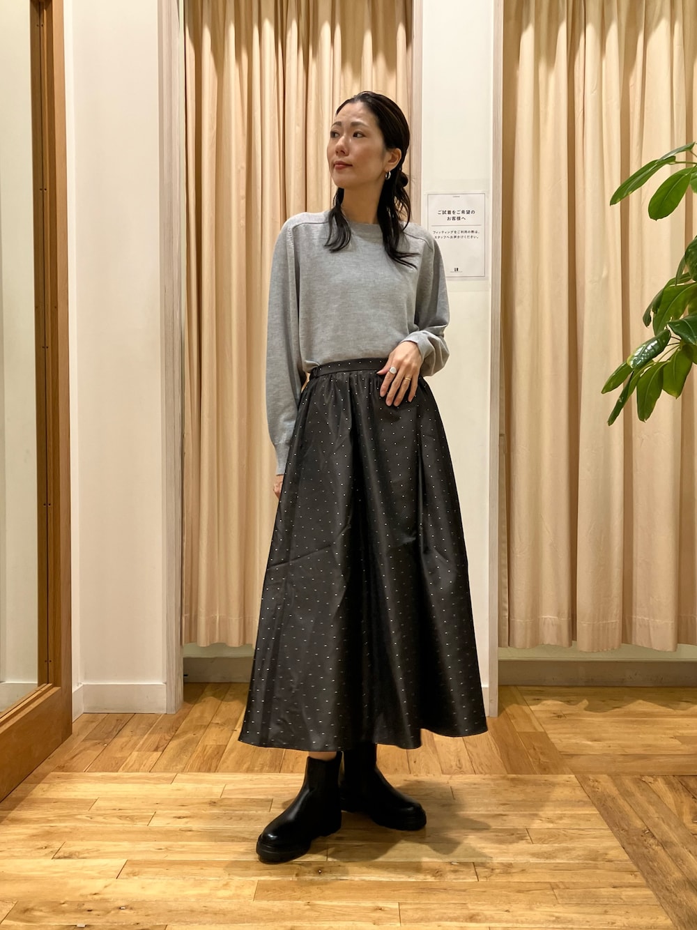 きれいめなジャンパースカートは冬も過ごせる厚手の素材、さらに嬉しい発熱機能付き。2サイズなので幅広い身長の方に着ていただけます◎