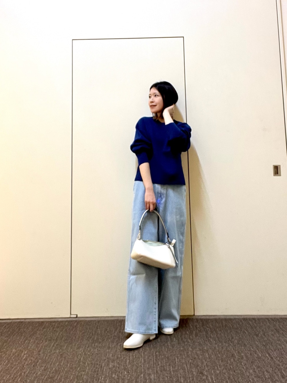 柔らかい肌触りが着心地の良いニットベストは袖口が大きめなのでボリュームのある袖のインナーとも合わせやすいです◎コンパクトな着丈が合わせるボトムスを選びません!