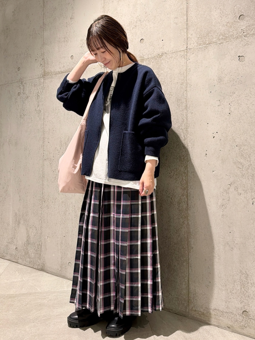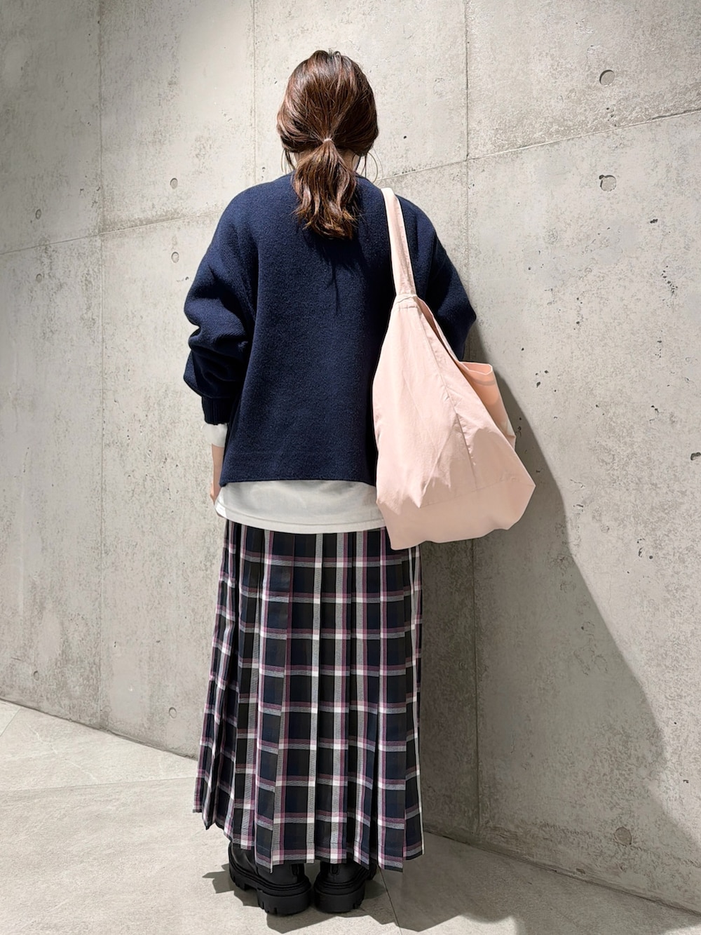 今回は、チェック柄のプリーツスカートを主役にした、大人カジュアルコーディネート。