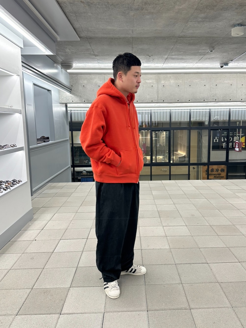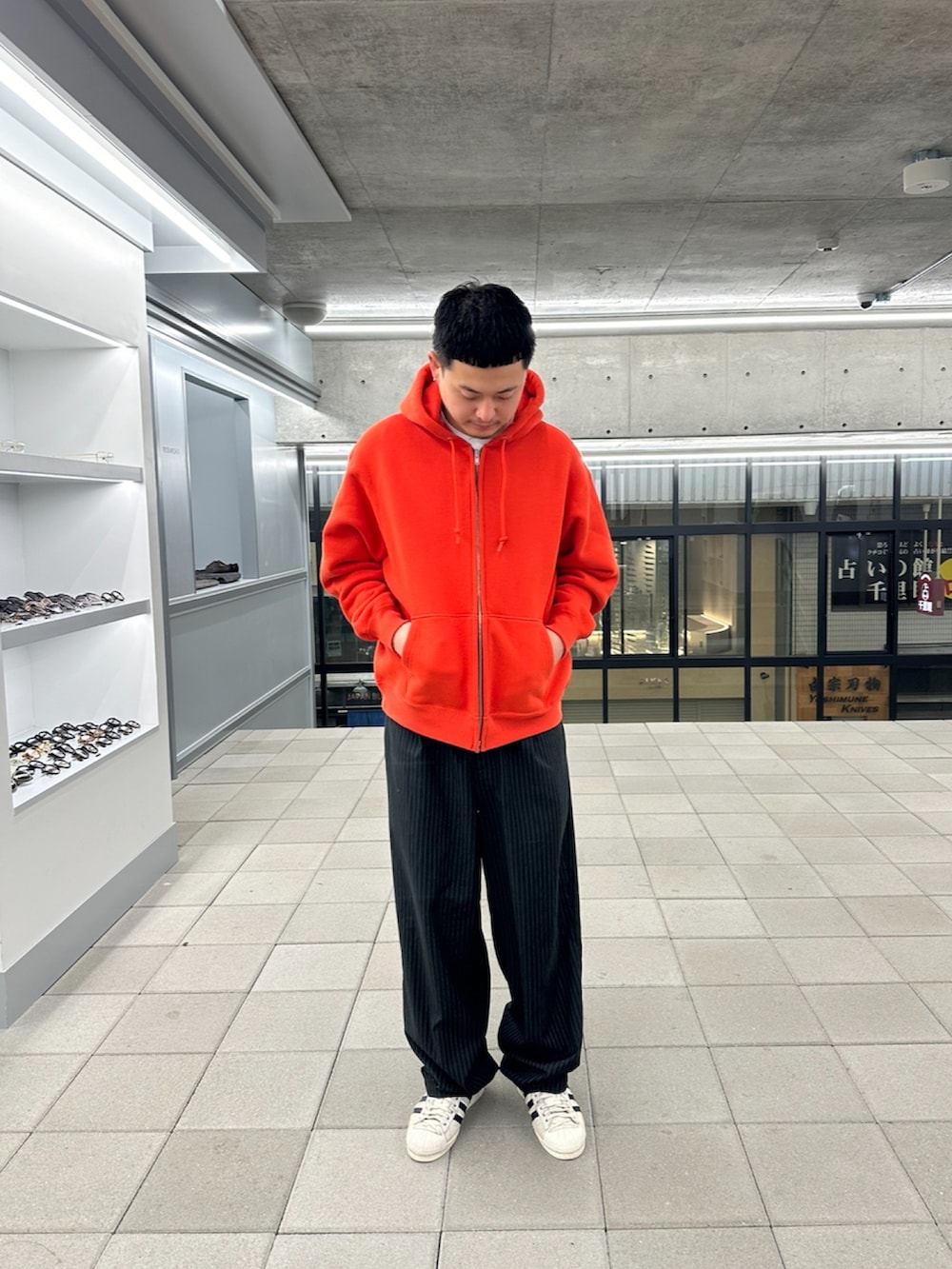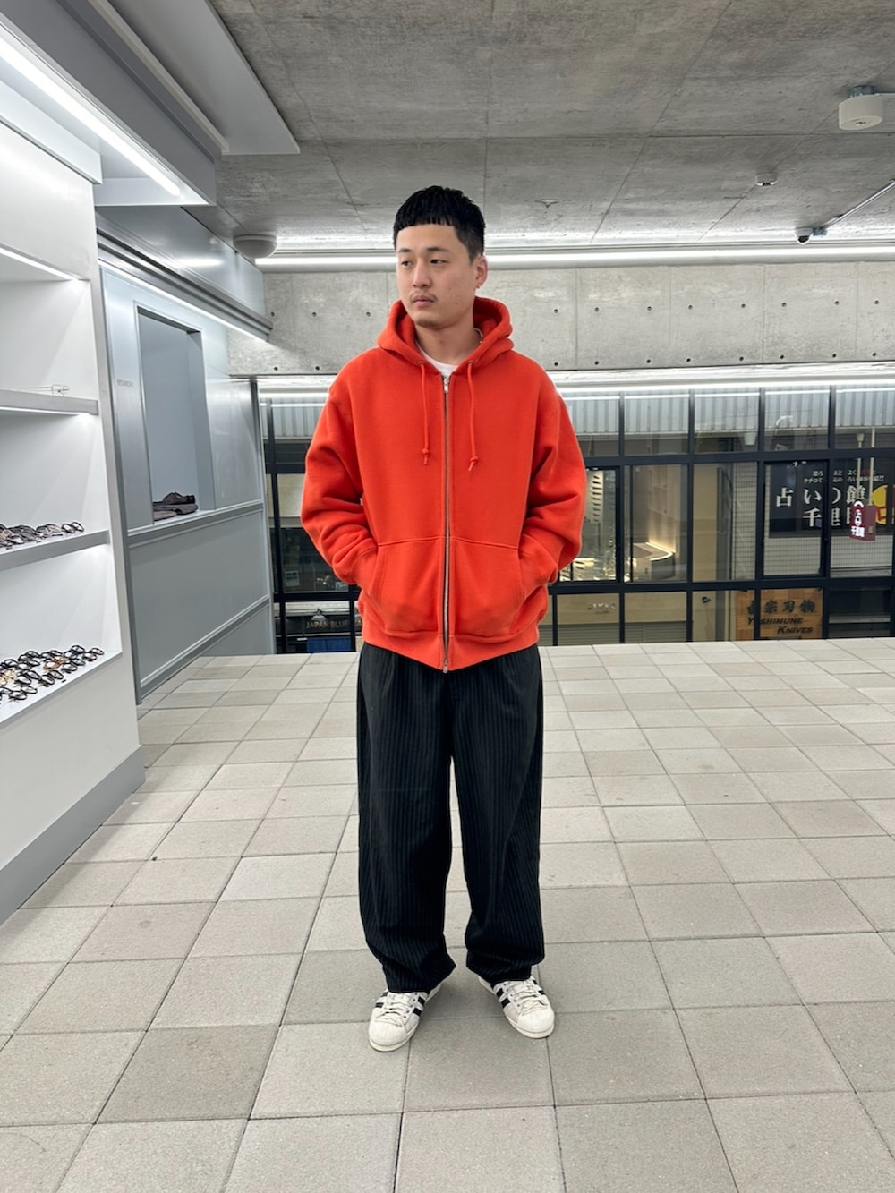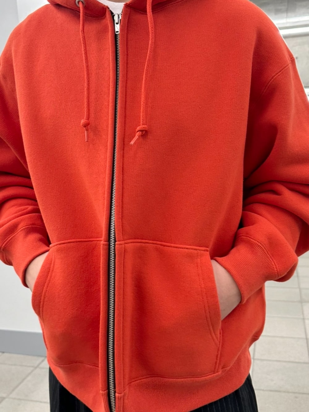 ハリ感のある生地に他を邪魔しない発色のいいオレンジ、ジップアップな点も僕の「ラフでオシャレに」の定義にバッチリあってて好きです🗣