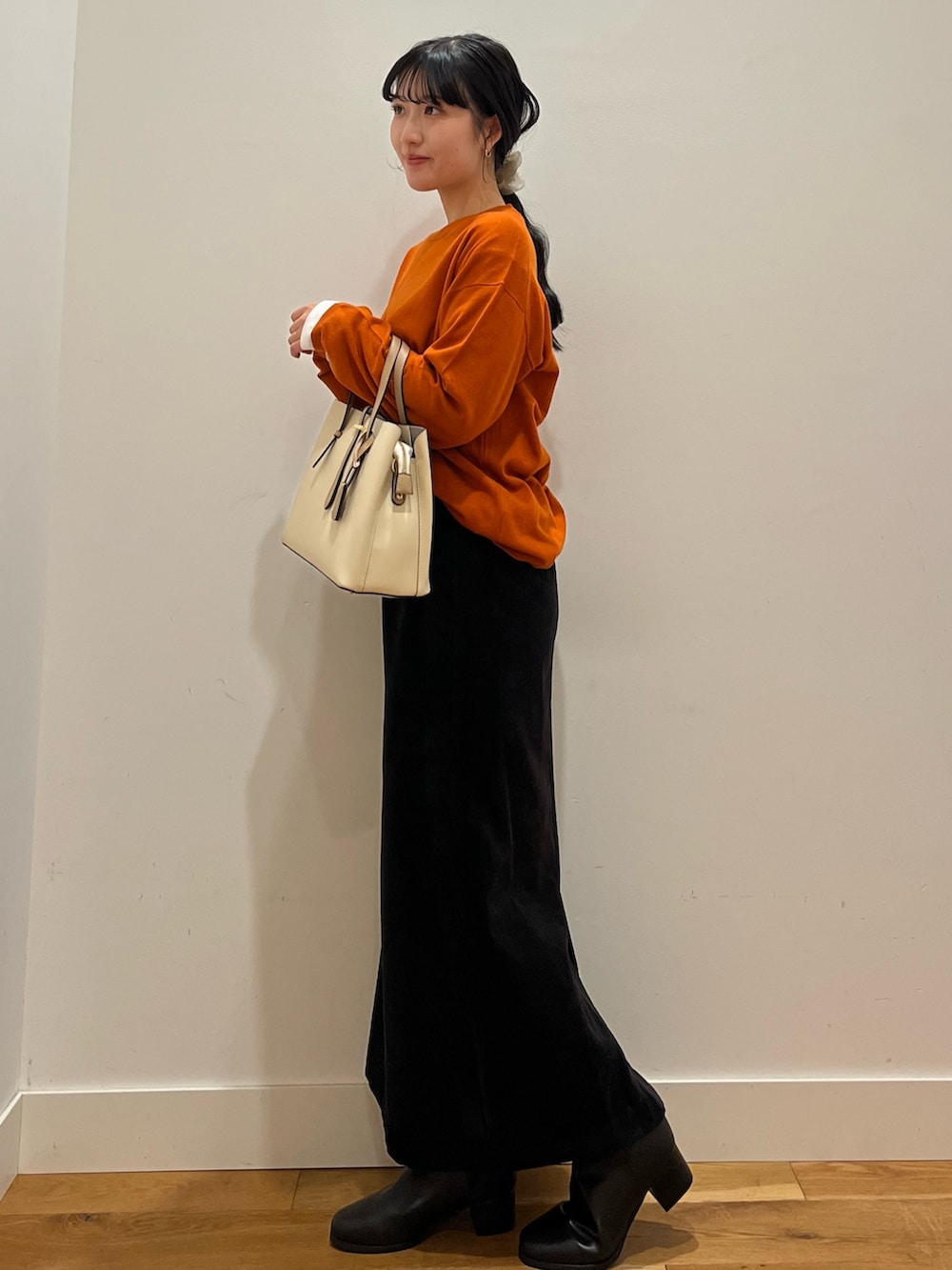 1枚で映えるオレンジニット🍊🧶