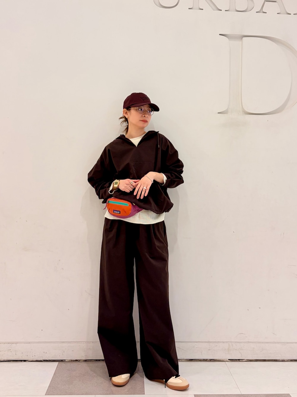 EKALの裏起毛スウェットパンツはウエストが太めのゴム仕様で楽な履き心地です!タックの入り方が綺麗でカジュアルすぎず履いていただけます◎