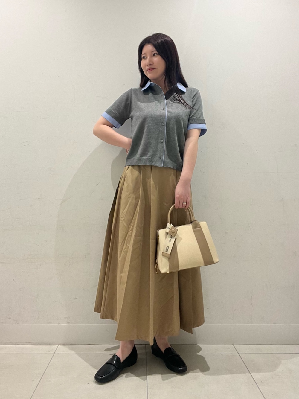 広めのネックラインで抜け感もだせるのでゆったりシルエットのボトムスでもバランスよくみせてくれておすすめです♩