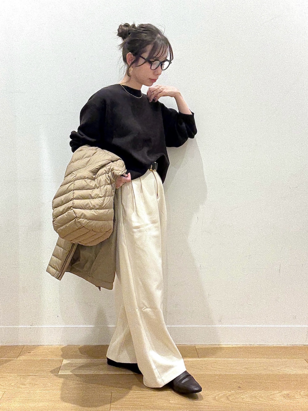 ややカジュアルなダントンのフード付きダウンが大人のきれいめスタイルに✨