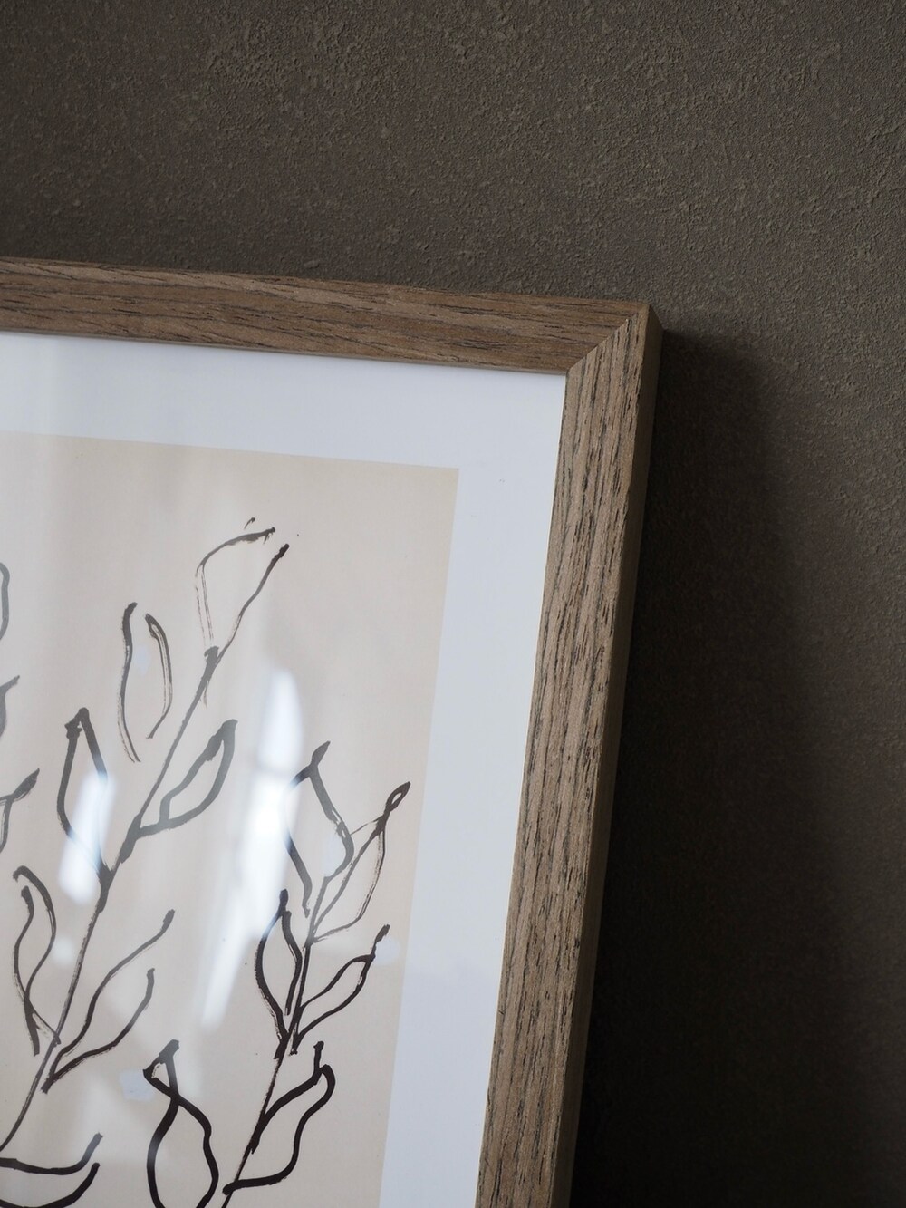 落ち着いた色の木のフレームが相性ぴったりです◎