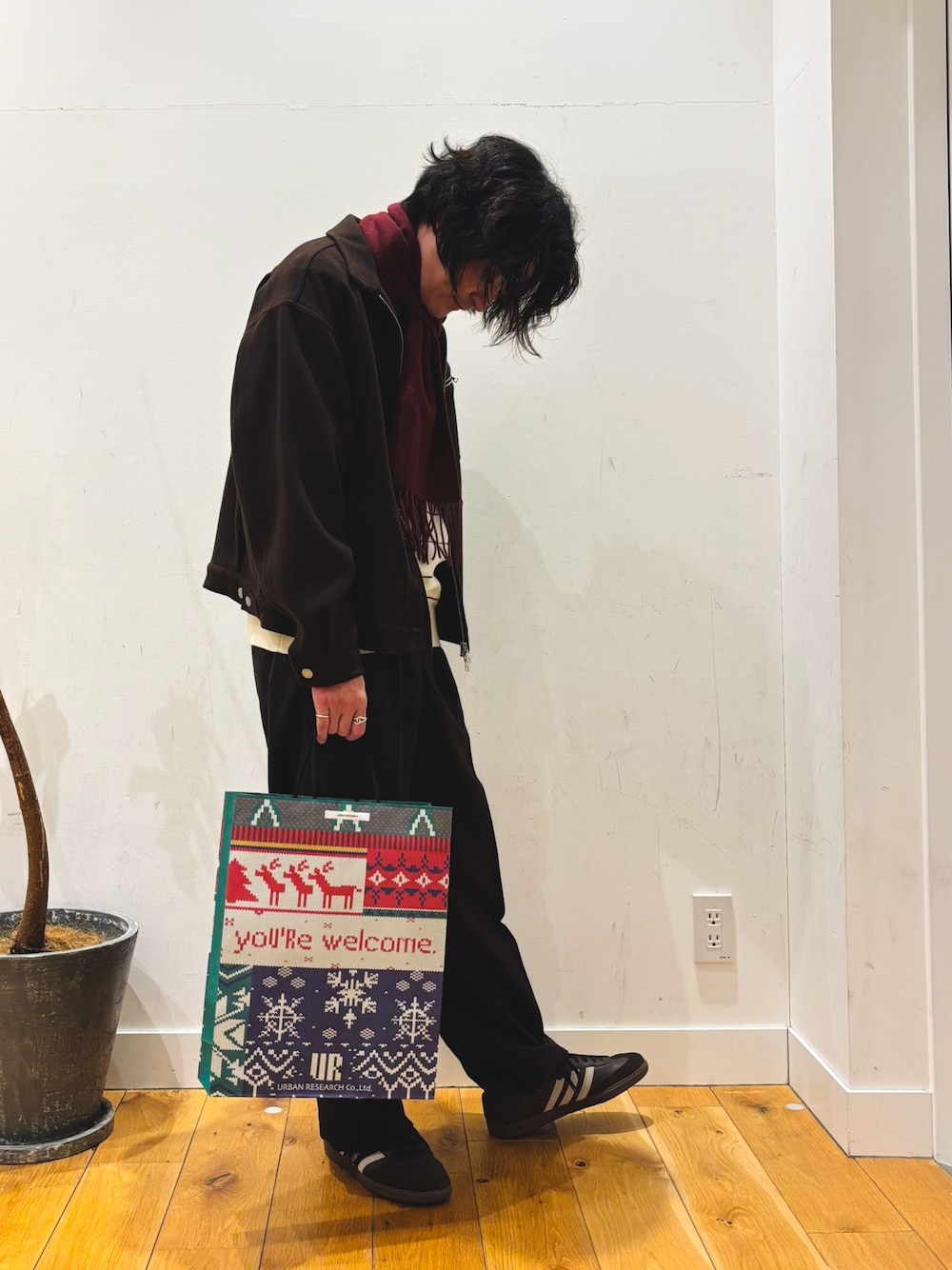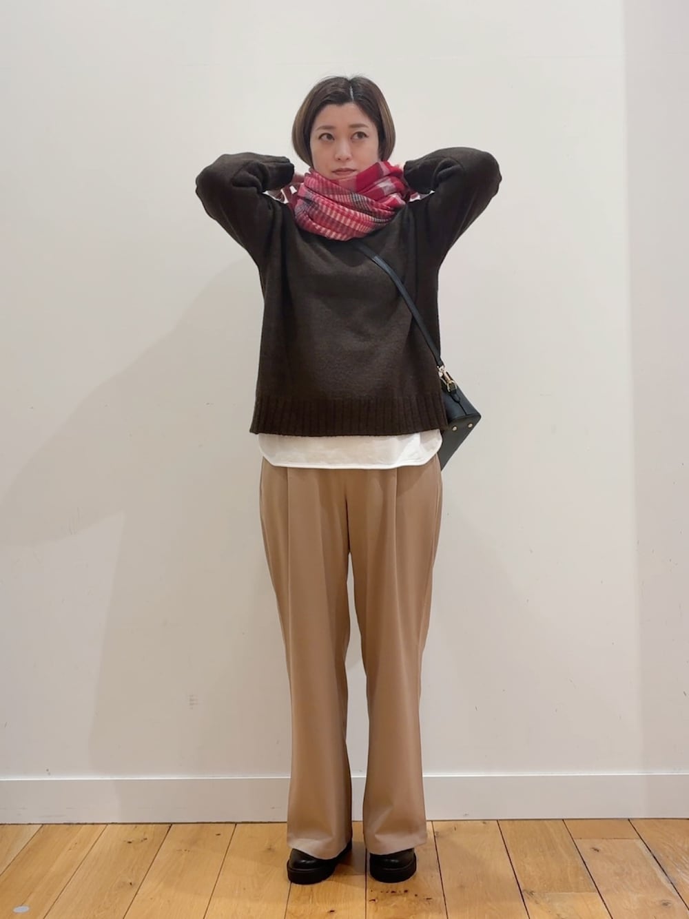 モックネックニットにダントンのフリースジャケットを着ています!もし寒い場合はこのジャケットの上からでも重ね着出来ます!パンツは落ち着いた印象になるようにブラウンのコーデュロイパンツにしています!又、マフラーは多くの柄がありとても暖かいです!