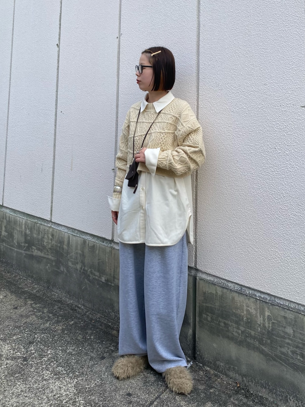 秋らしいスエード素材のバッグにワンポイントとして柄のスカーフをプラスしてオシャレ感も出しました。
