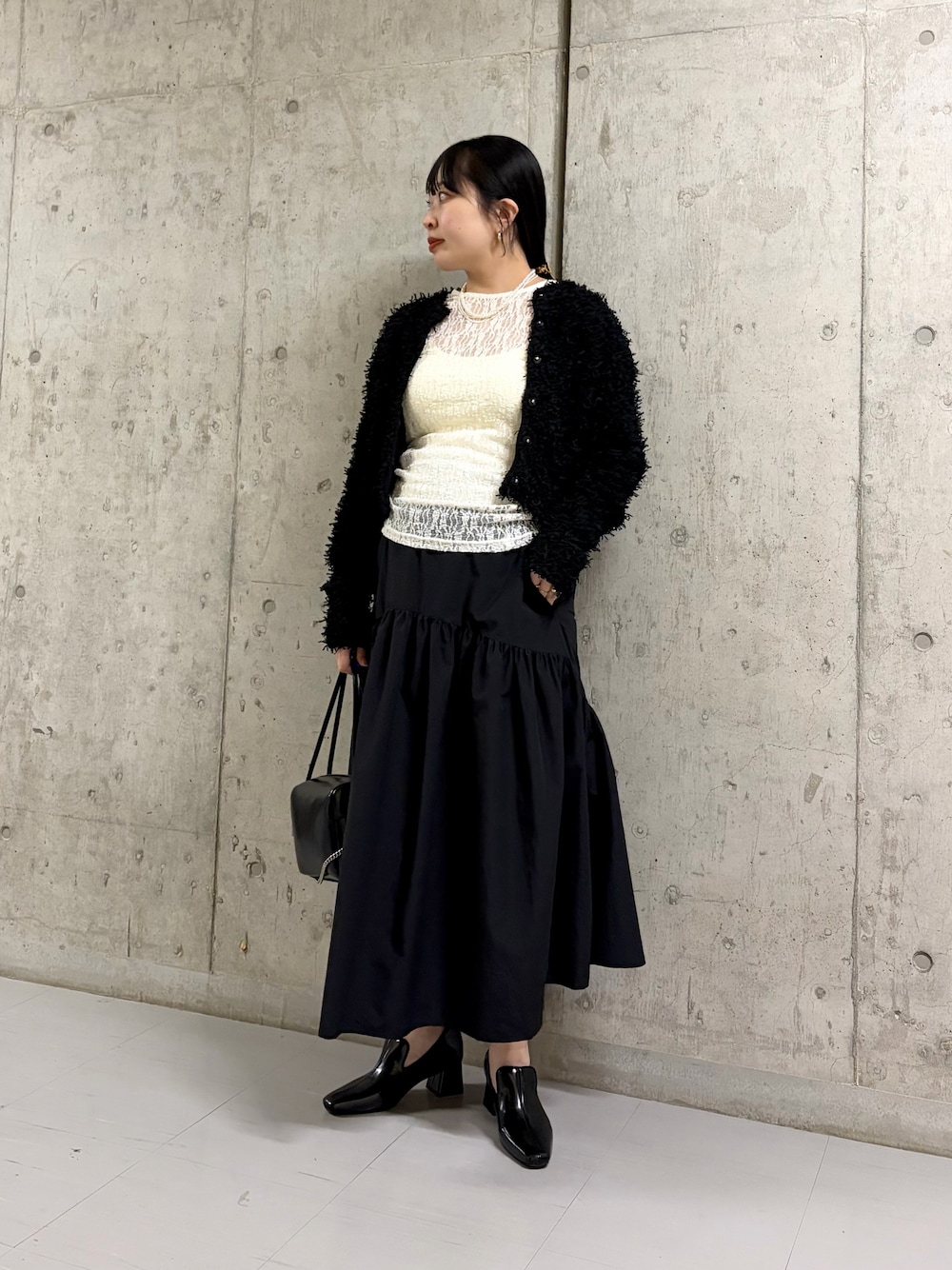 ブラックのオールインワンは、綺麗めにもカジュアルにも着ていただけて、暖かいのが嬉しいポイントです✨低身長の方でも着ていただきやすいアイテムです!