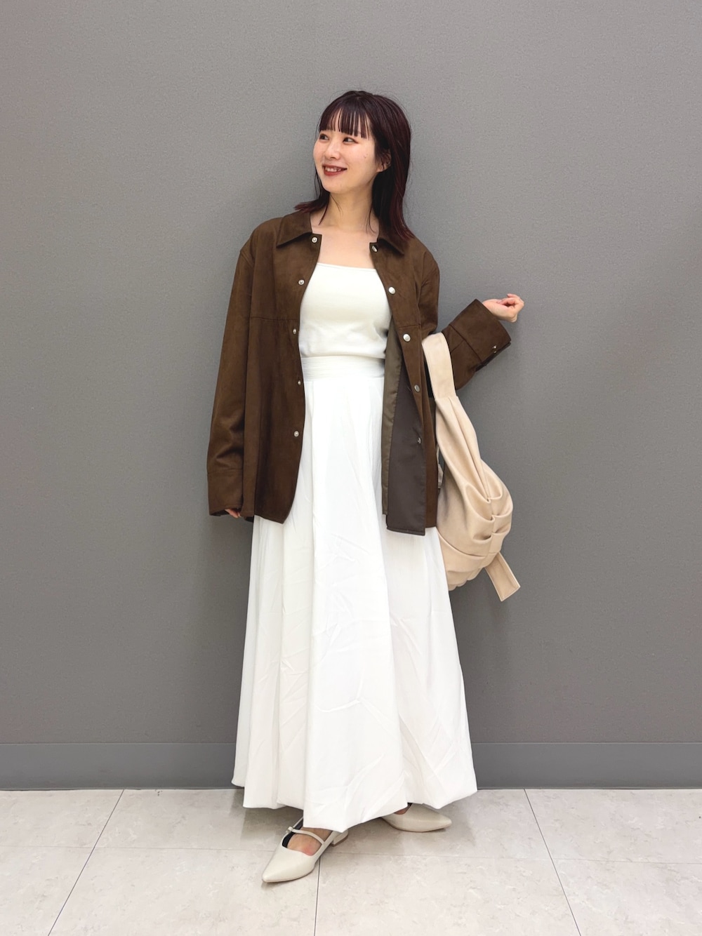 大人気のヘンリーネックミニケーブルセーターは、アイボリーを選んで、重たくならない冬コーデにしています🤍👚