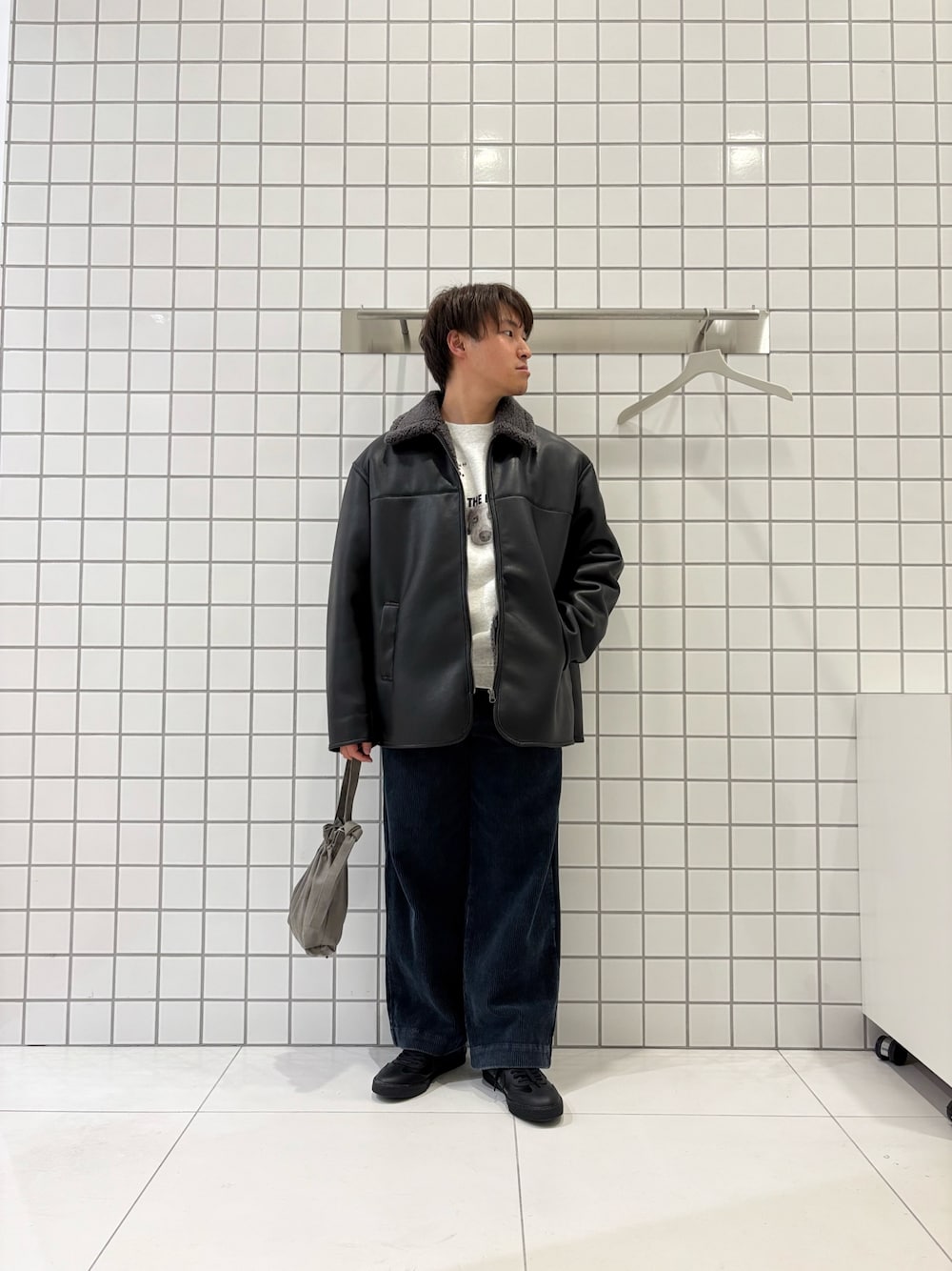 明るい赤にワンちゃんのプリントが印象的なスウェットに、冬らしいコーデュロイのパンツを合わせました❄️