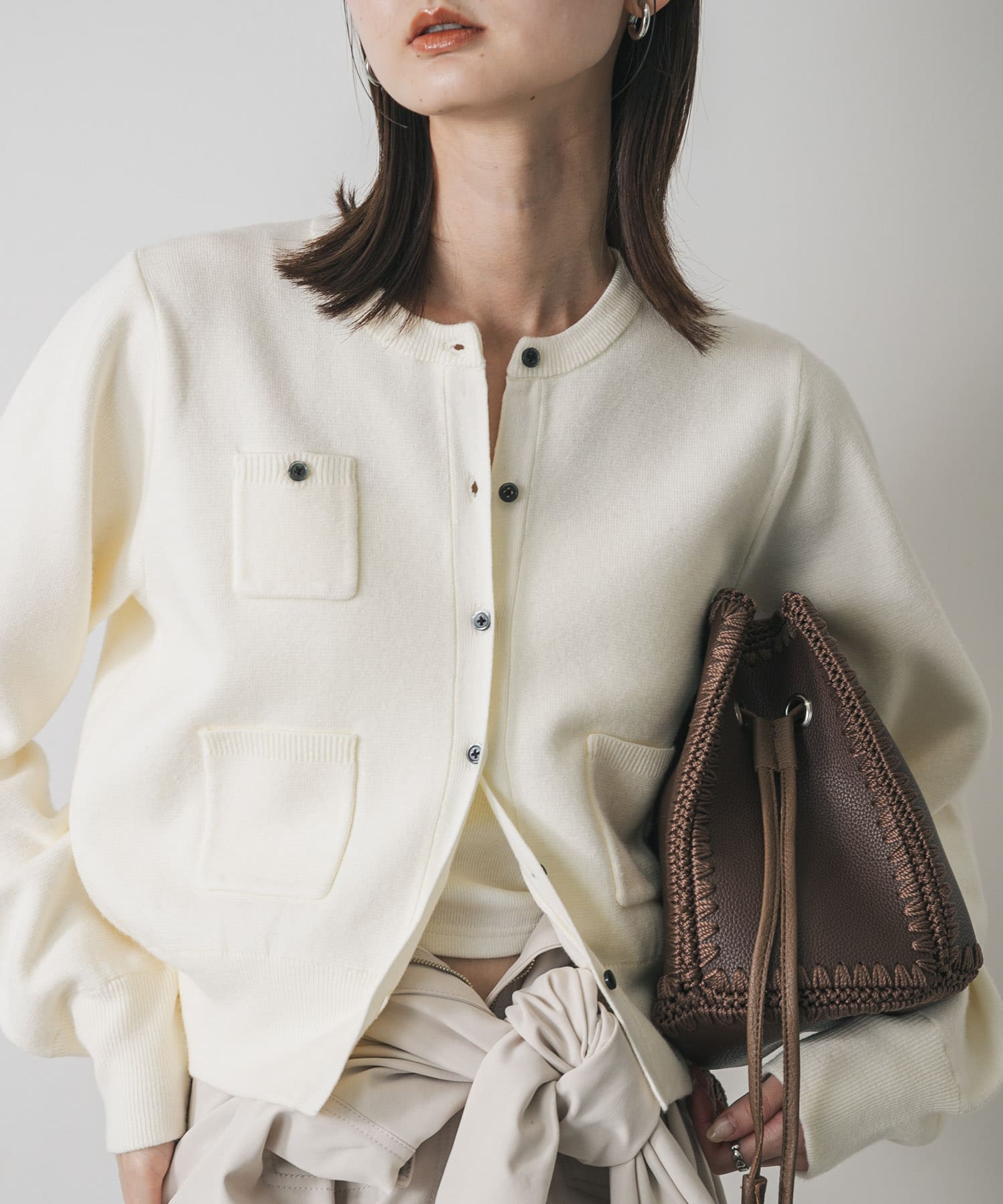 ニットはミニポケットがたくさん付いていて一枚でこなれ感が出るので可愛らしい商品です🤍