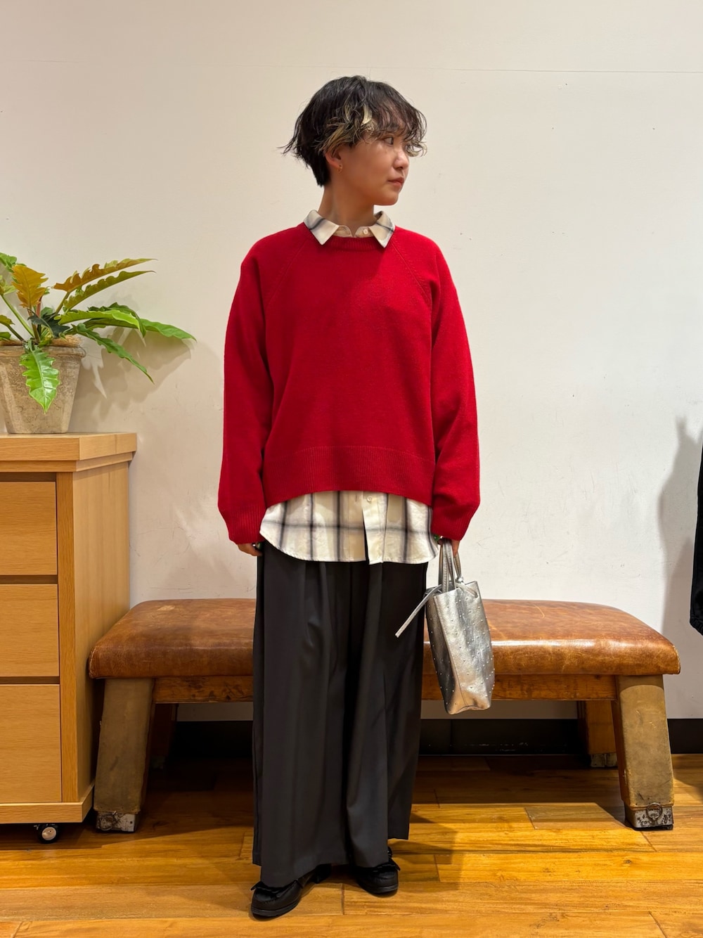 カラーニット、ワイドパンツと合わせてカジュアルに着用するのもおすすめです🙌