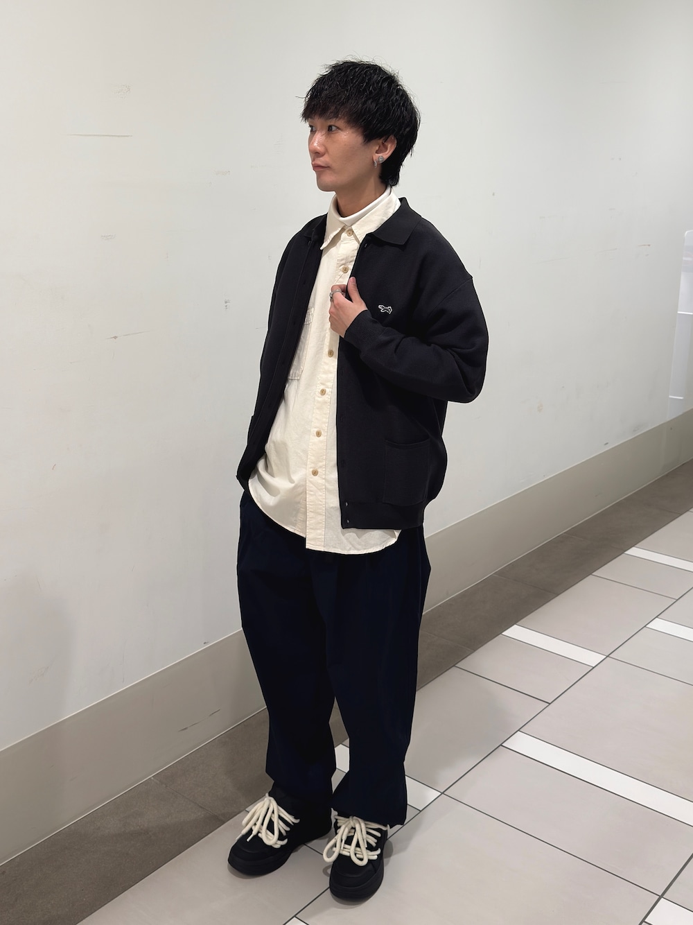 EKALのニットとパンツで色を合わせて、カバーオールを目立つようにしてみました!パンツはやや細めのシルエットになっており、すっきりした見た目になります。