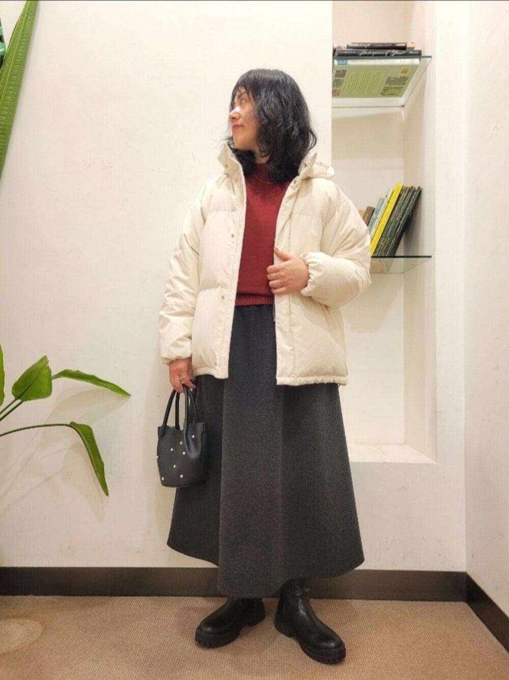 厚手のアイテムも中に着やすいです。