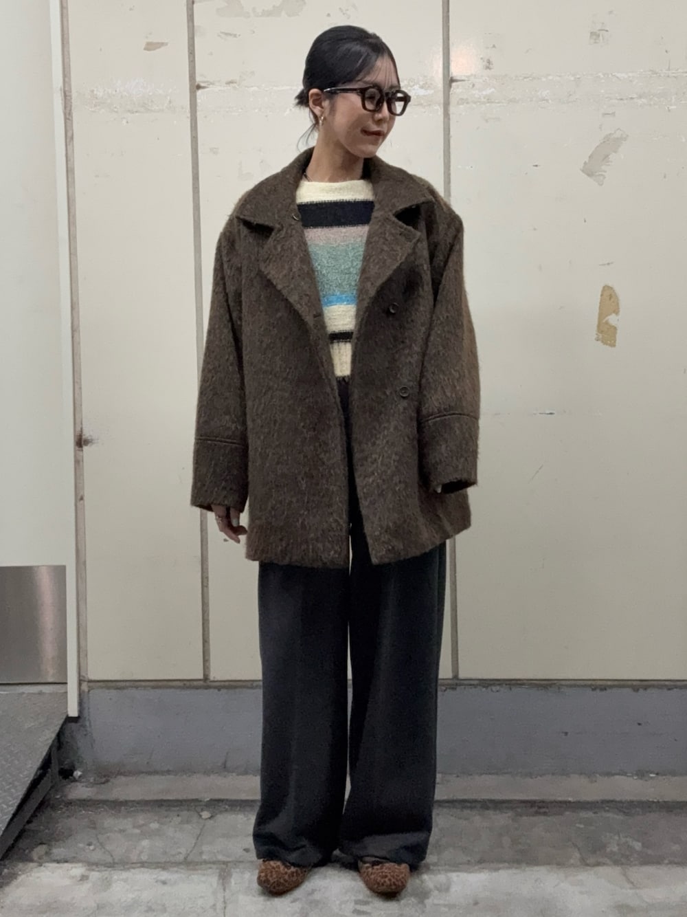 一見シンプルコーデに見えますが、ボトムスはスカートに見えるパンツ🩳ニットも首元がアシメになっていて、実は一癖ある可愛いコーデです🤳🏻🤍