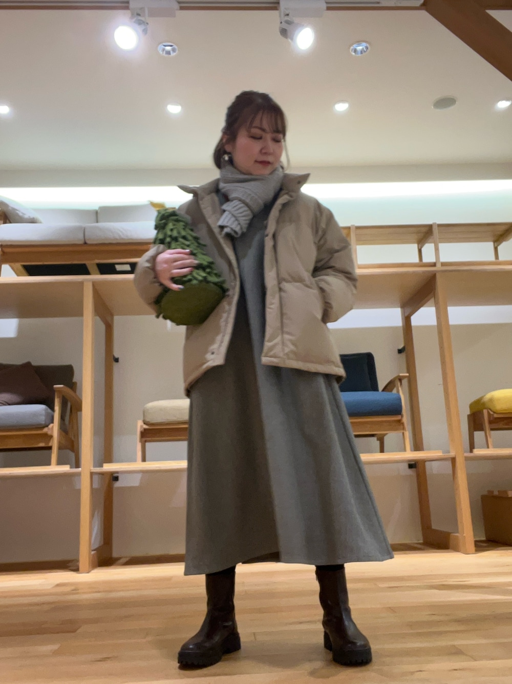 ワンピースはチャコールで、差し色にオレンジを入れてみました🍊