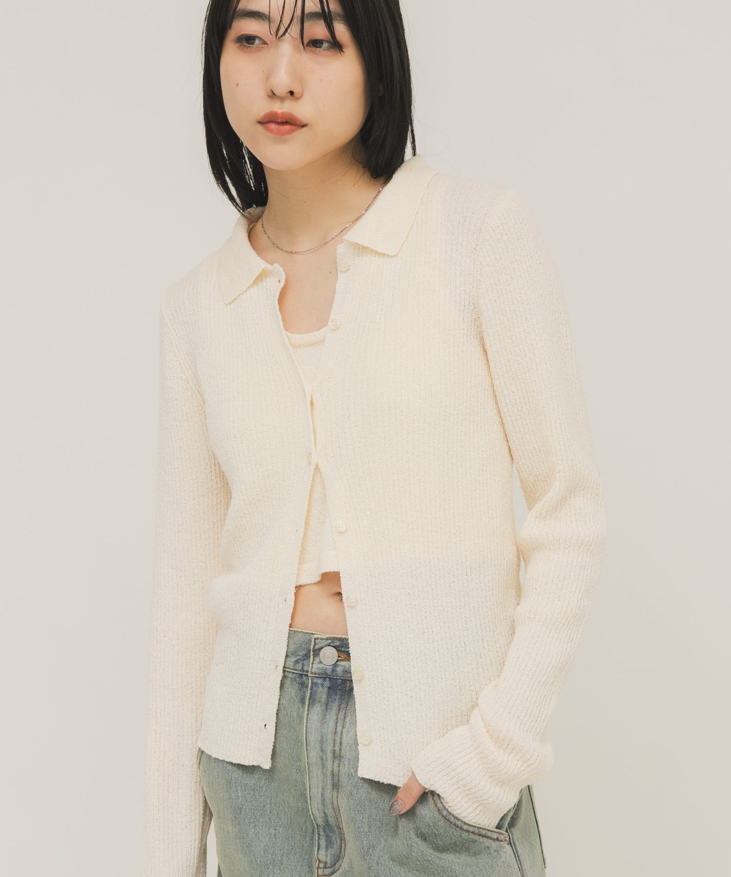 『一部WEB限定カラー』ミニブークレレイヤードニットシャツ