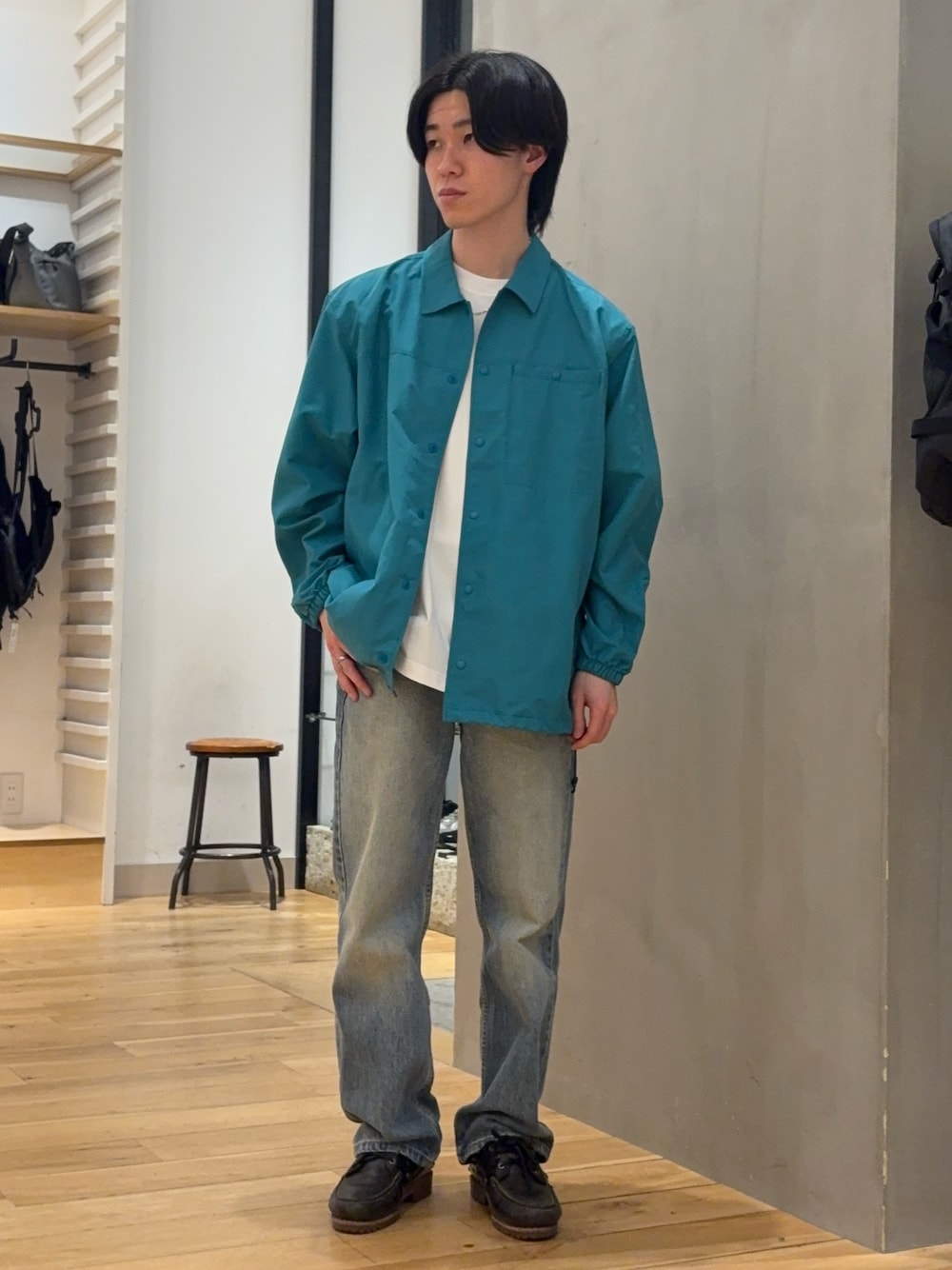 短丈なのでボリュームのあるボトムで合わせてもスッキリとした印象になります!