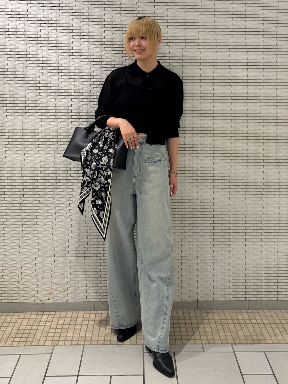 フリルが女性らしさを出してくれるので、パンツでカジュアルに外しました🥨