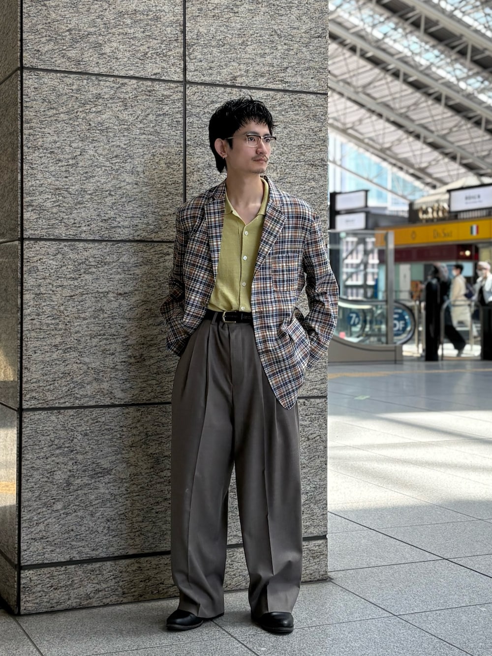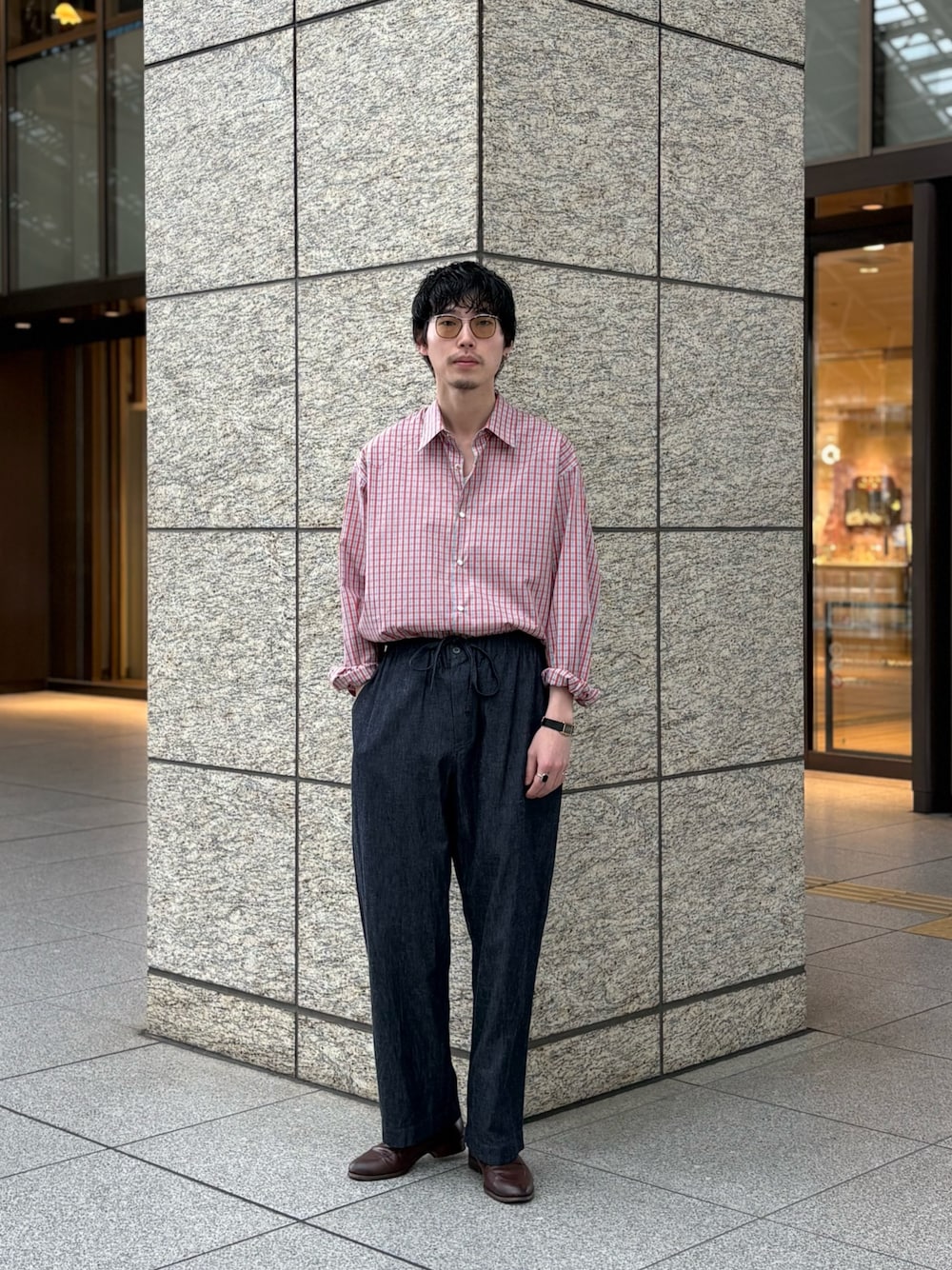 クレプスキュールのニットシャツは肌触りもよく、ゆとりあるサイズ感なので春先でもサラッと羽織れます。
