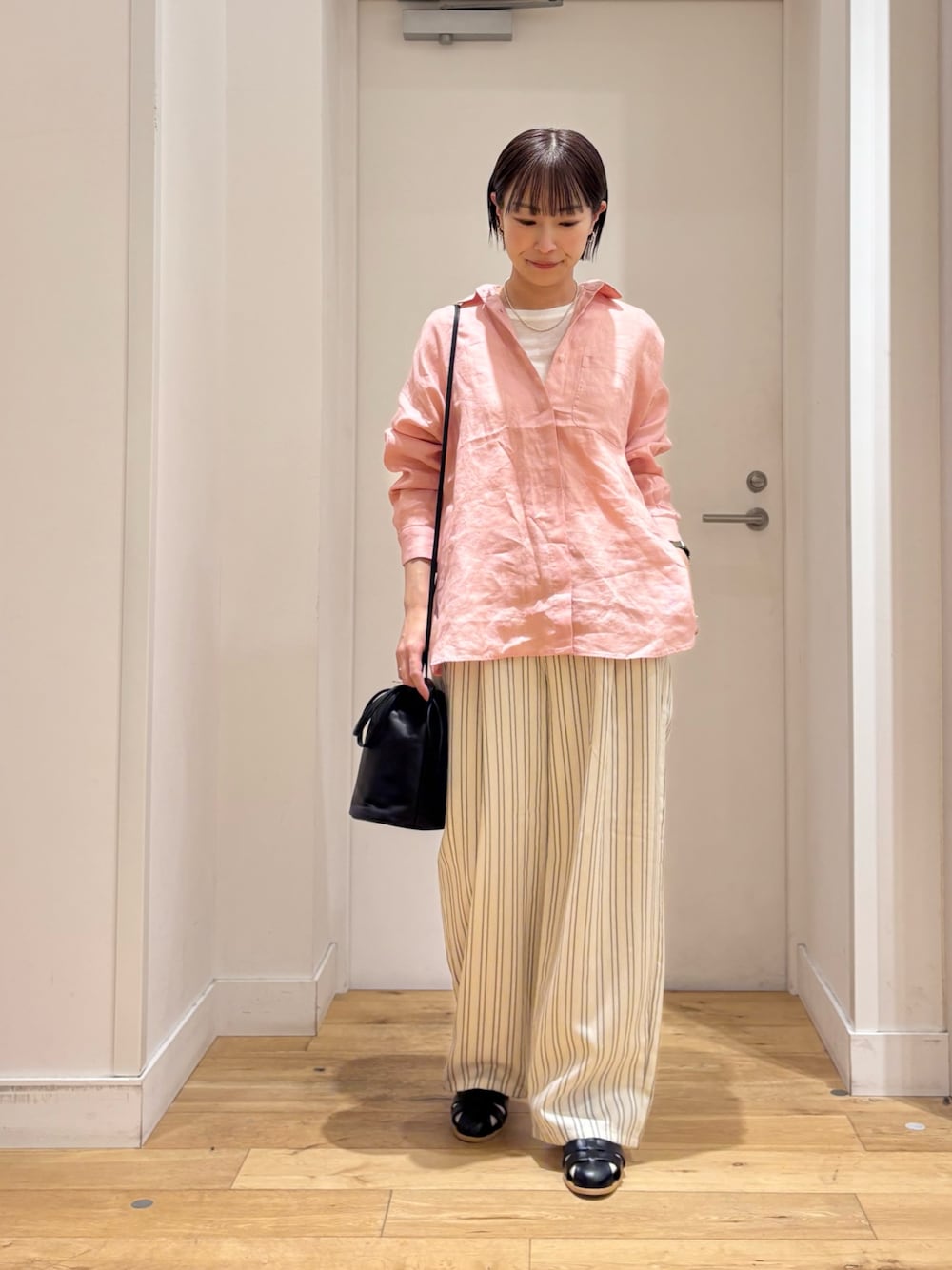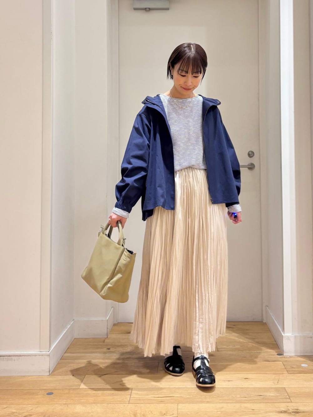 トップスは、程よくゆとりのある柔らかい生地感のニットが女性らしい抜け感を与えてくれます♪