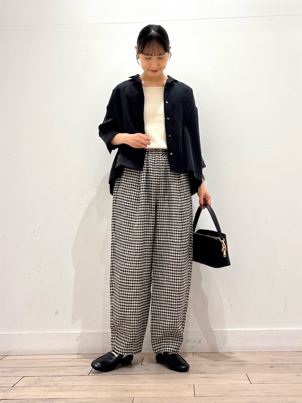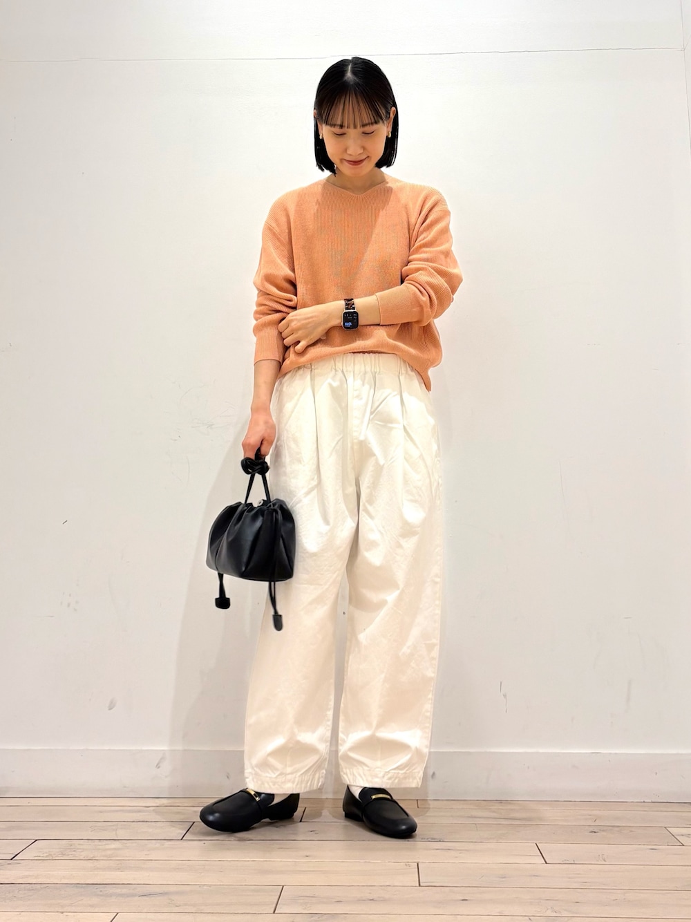 ドルマンなので体のラインを拾いにくく、風通しも良いです☺️程よくシャリのある素材感でサラッと着心地も◎