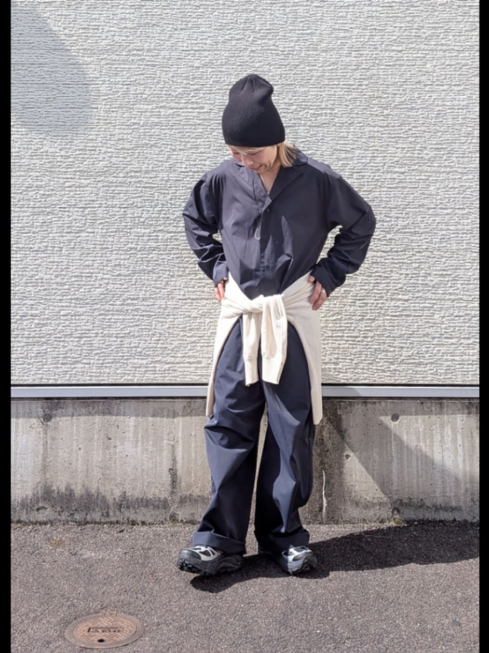 少しゆとりのあるサイズ感ですが、ウエストが絞れるデザインで小柄さんにもオススメです◎