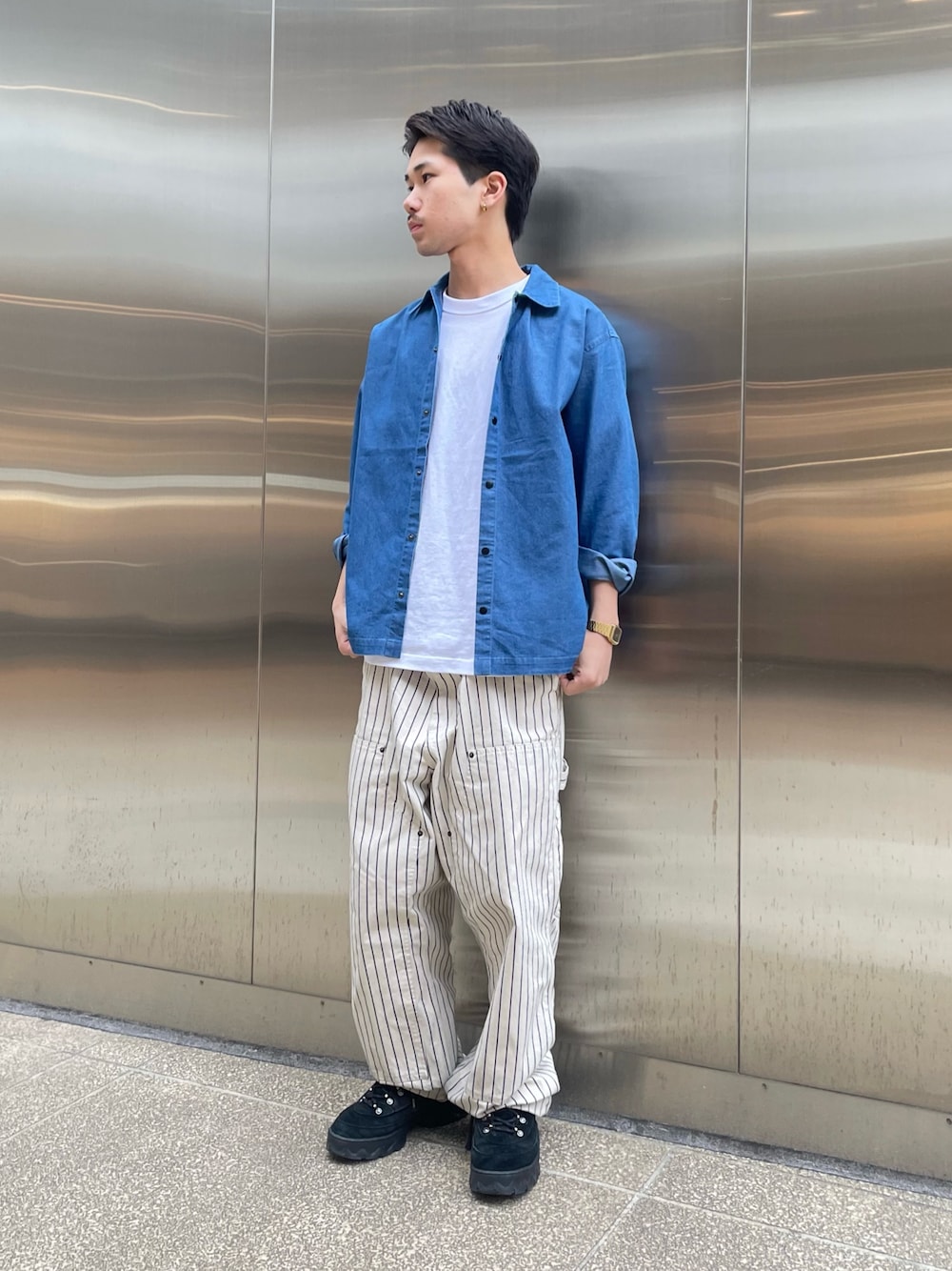 モノトーンだけでなく、こういったインナーに可愛らしい色味のチェックシャツを落とし込むことでかなり雰囲気が変わる印象なので、是非試し所です。
