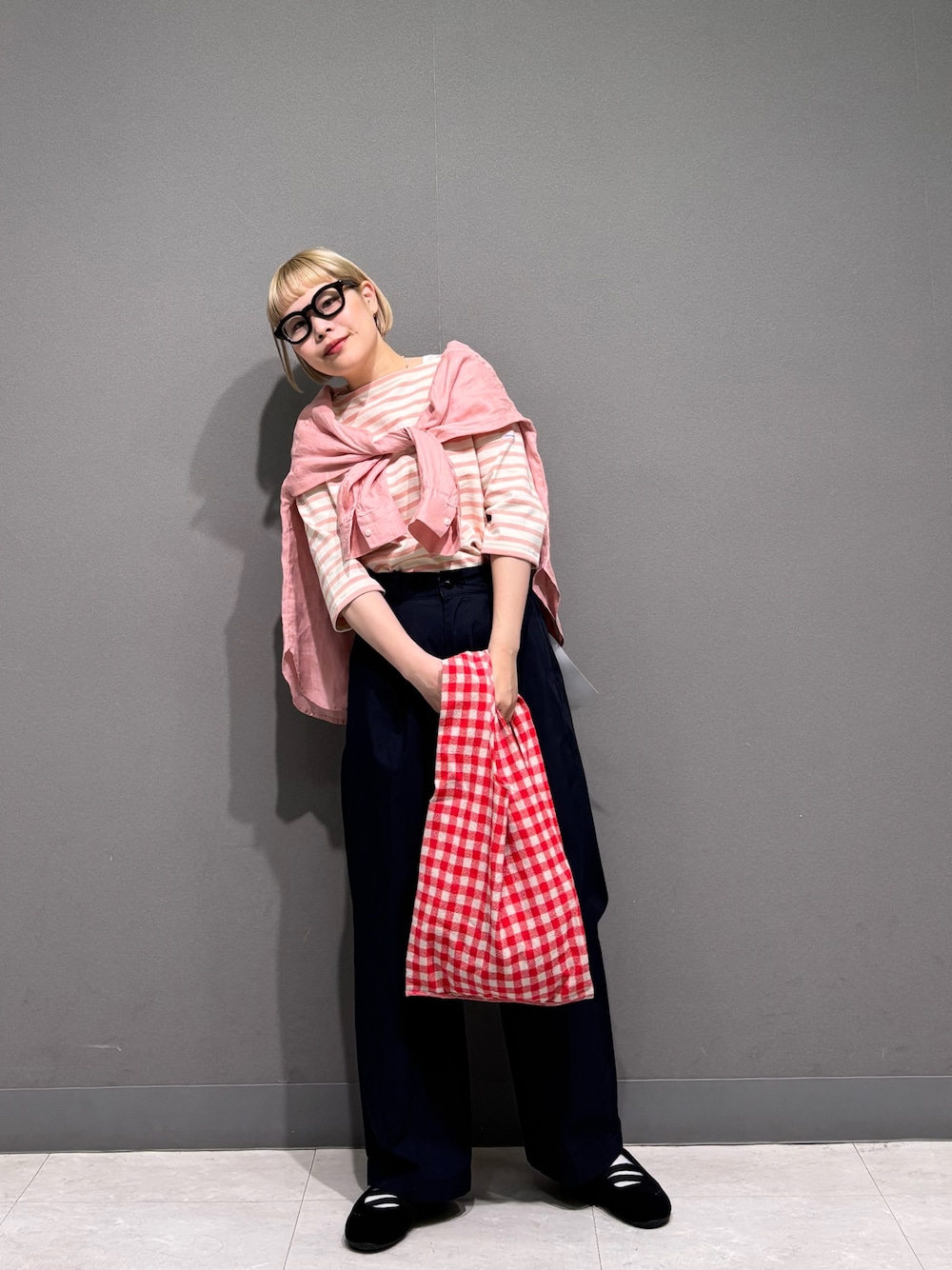 ピンク×チャコール で色合わせも抜かりなく。