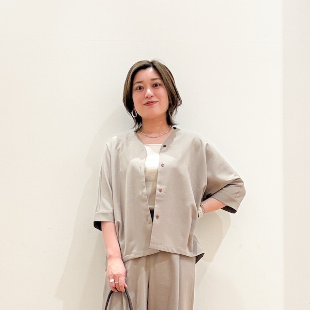 柄が新しくなったリネンリヨセルのイージーパンツを合わせました。