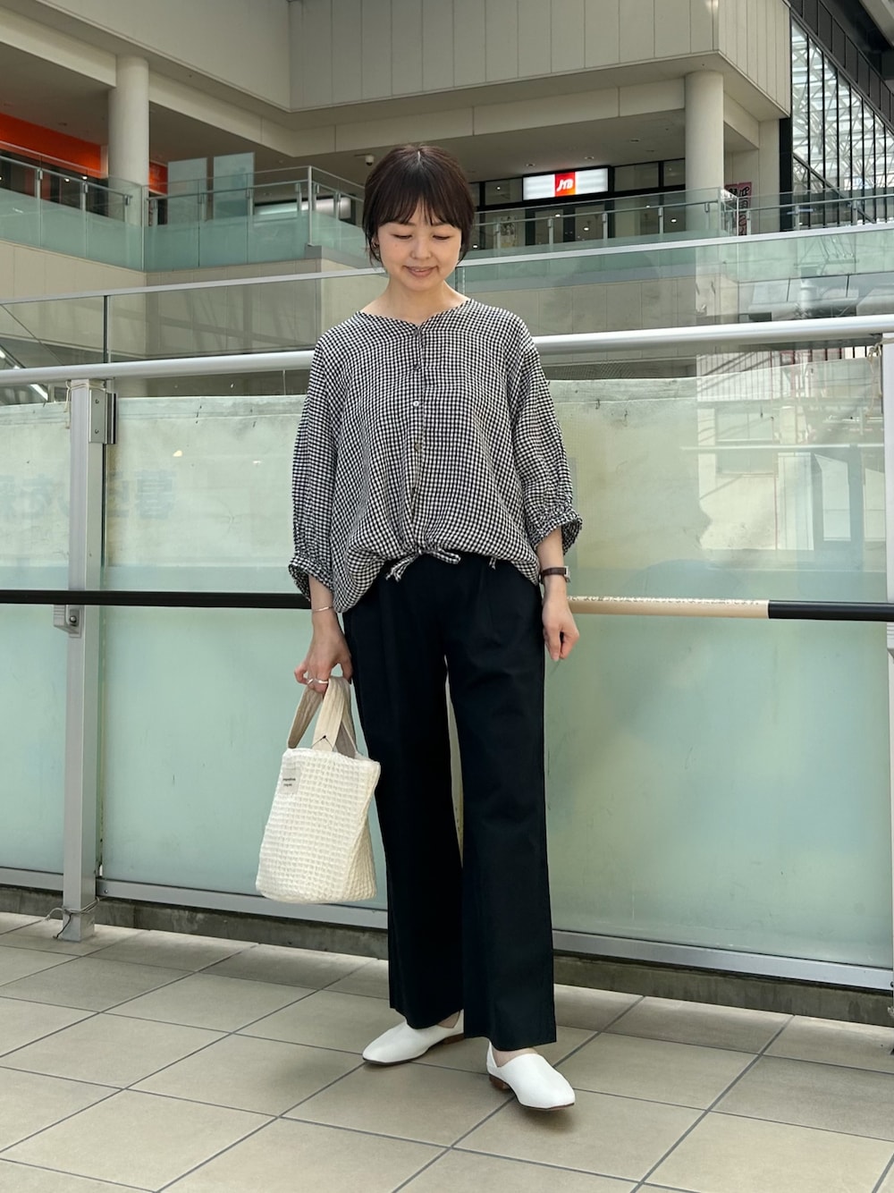 トップスは綿麻のさらっとした風合いがこれからの季節に着やすい1枚です。シンプルですが、存在感があります。