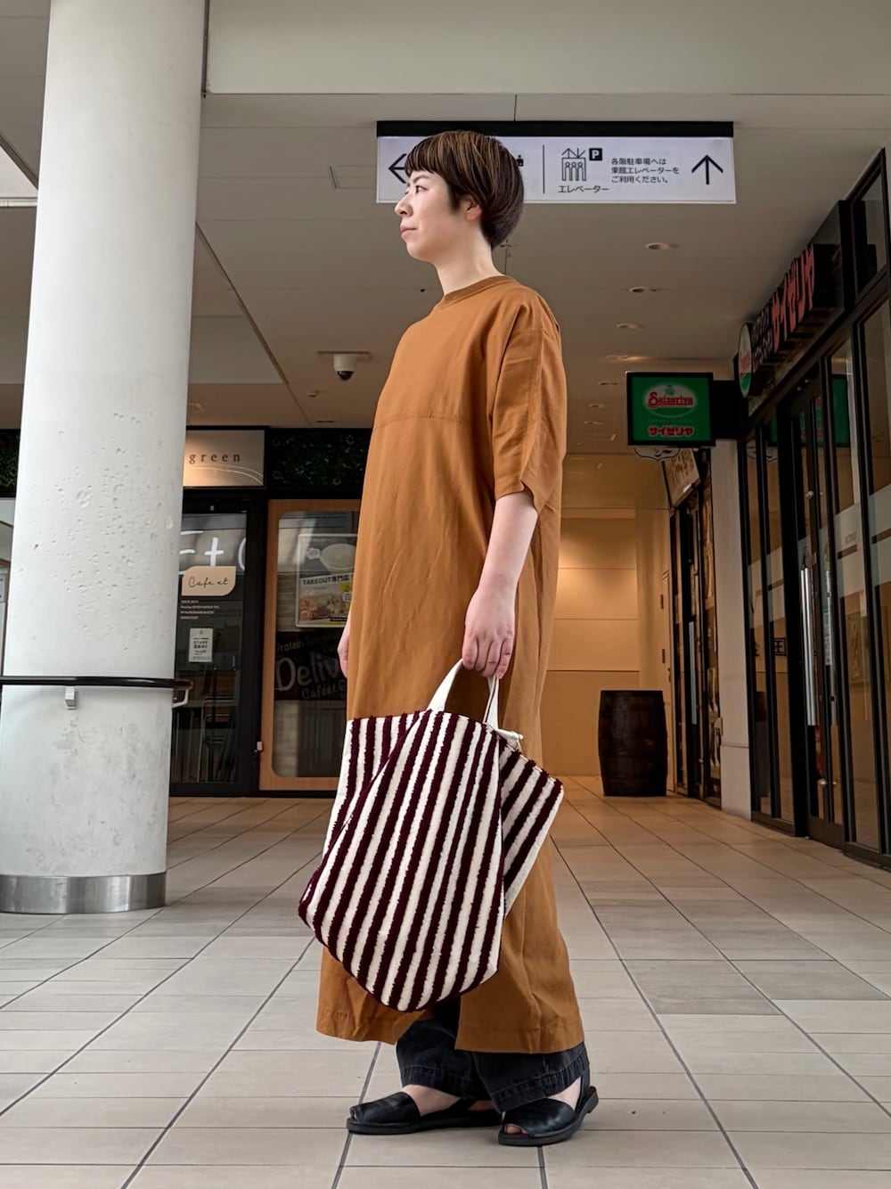 今回はリネンのサロペットと落ち着いた色合いでまとめてみました。サロペットはリネン素材で涼しいです◎