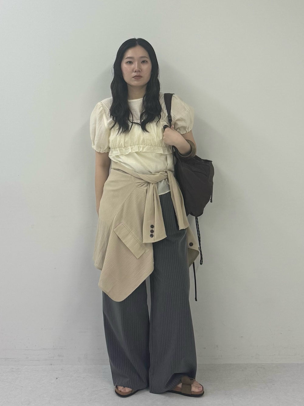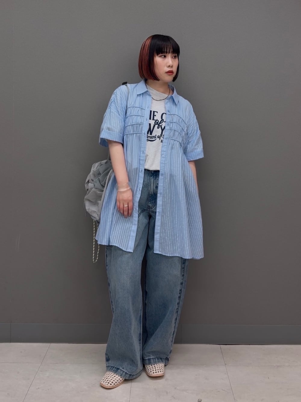 ルーズなアイテム同士は小物で空気感を変えるのがミソです☁️