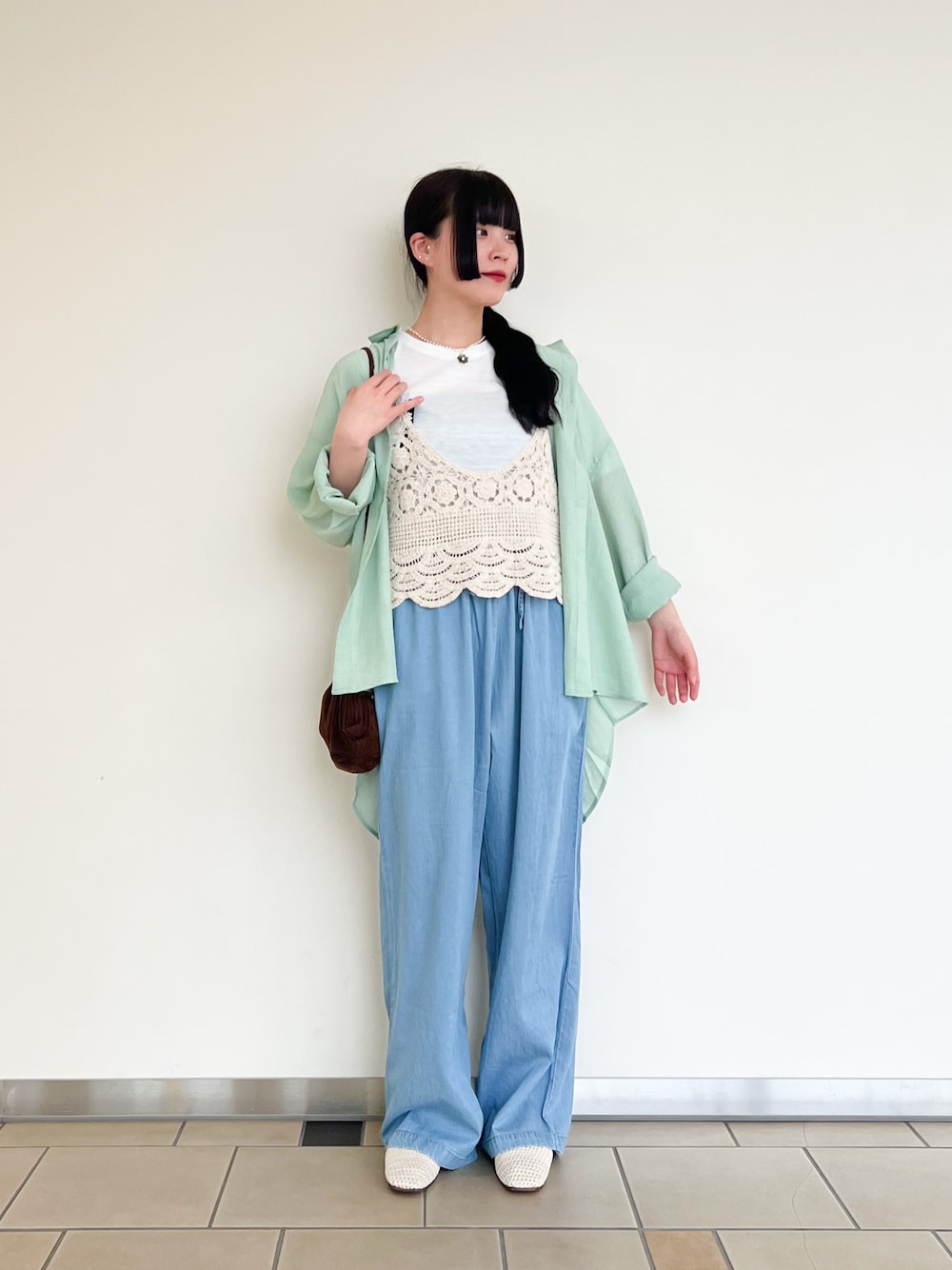 動きやすいパンツスタイルで、どこまでも歩けます◎しかもウエストゴムなので食べ歩きもできちゃいます🍙