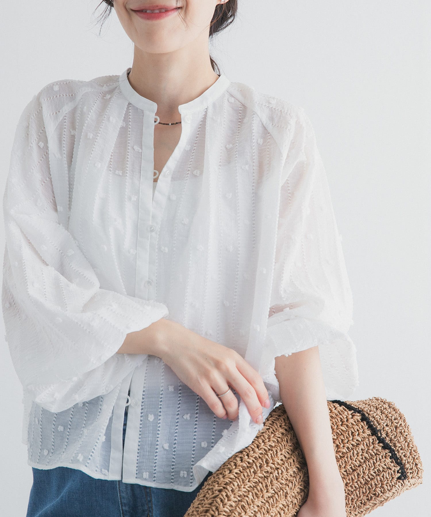 立体的な刺繍が可愛くて、1枚で上品に着こなしていただけます!フロントがボタンになっているので夏頃の軽い羽織としても重宝します🙆🏻袖先がゴムになっているので腕まくりしたスタイルも綺麗です✨